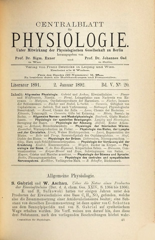 Inhalt: Allgemeine Physiologie. Gabriel und Aschan, Eiweissfäulniss. — Pinner