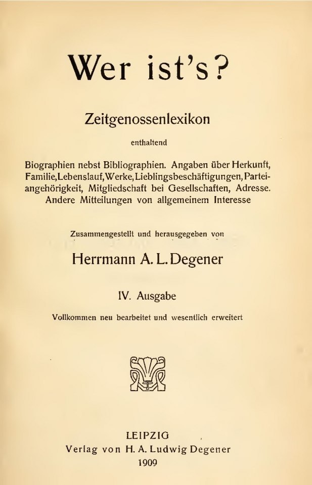 Biographien nebst Bibliographien. Angaben über Herkunft,