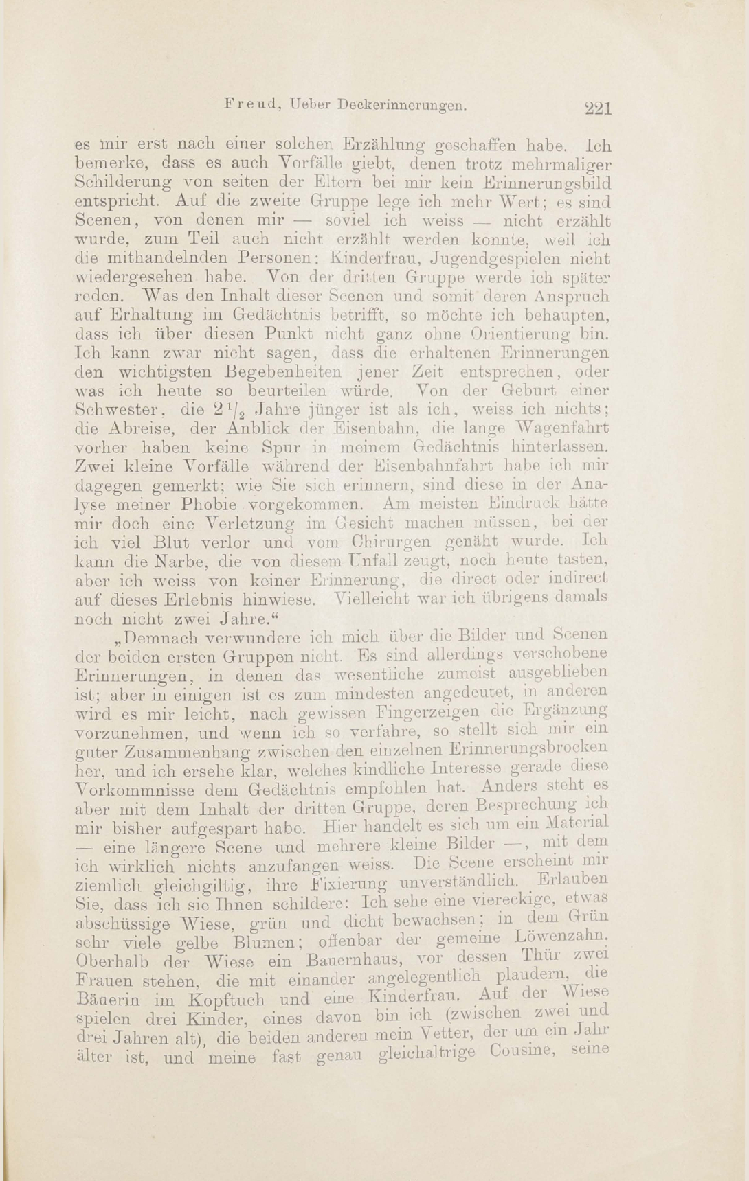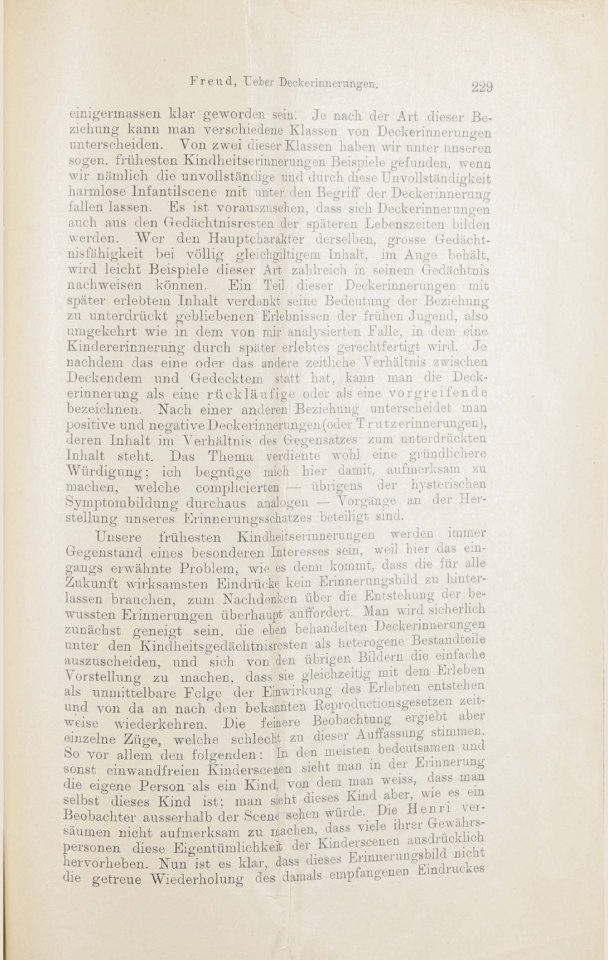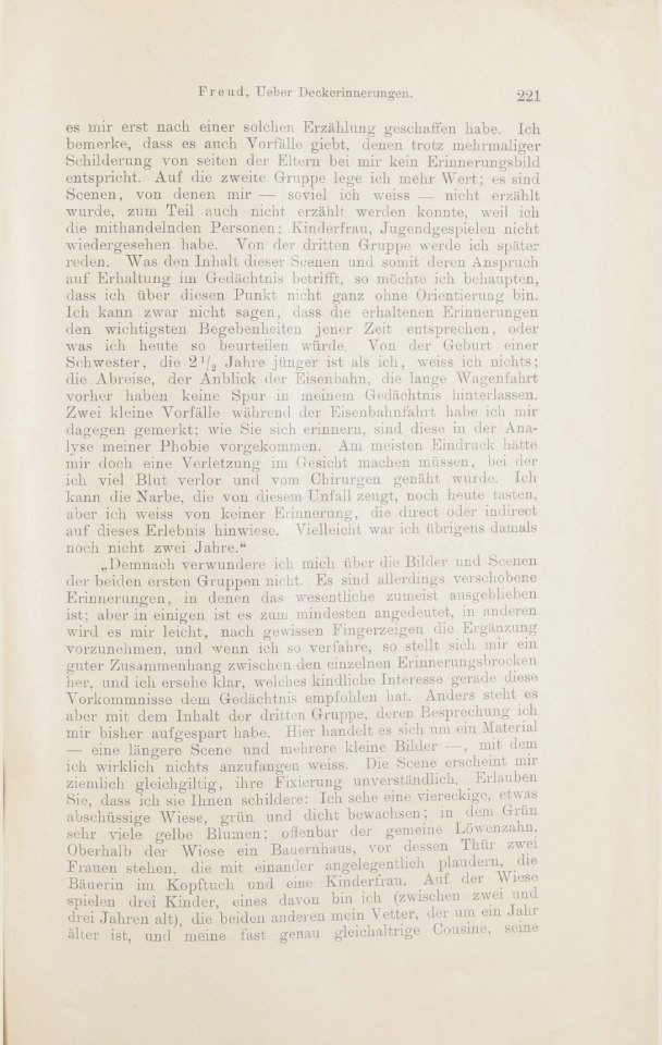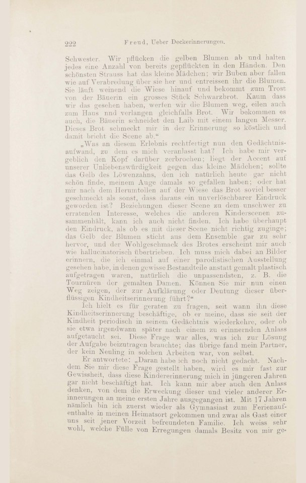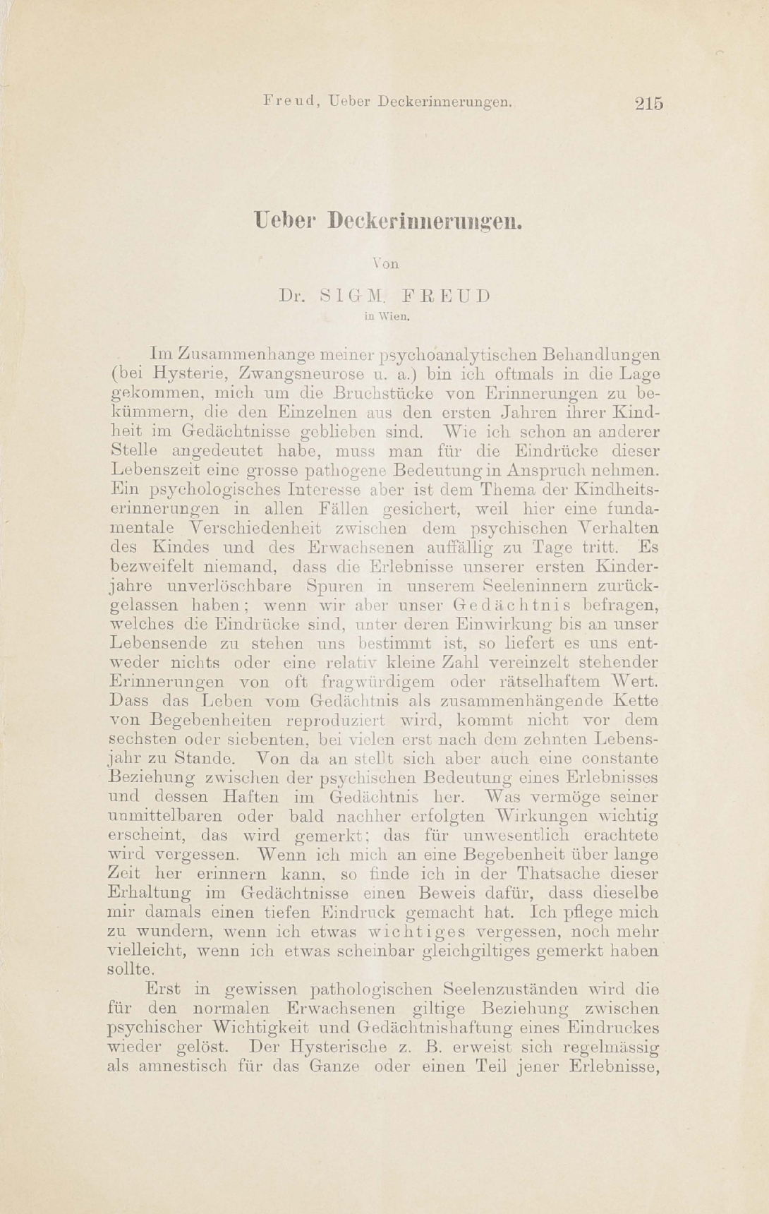 der normalen Amnesie fiir unsere Kindheitsjahre möchte ich als