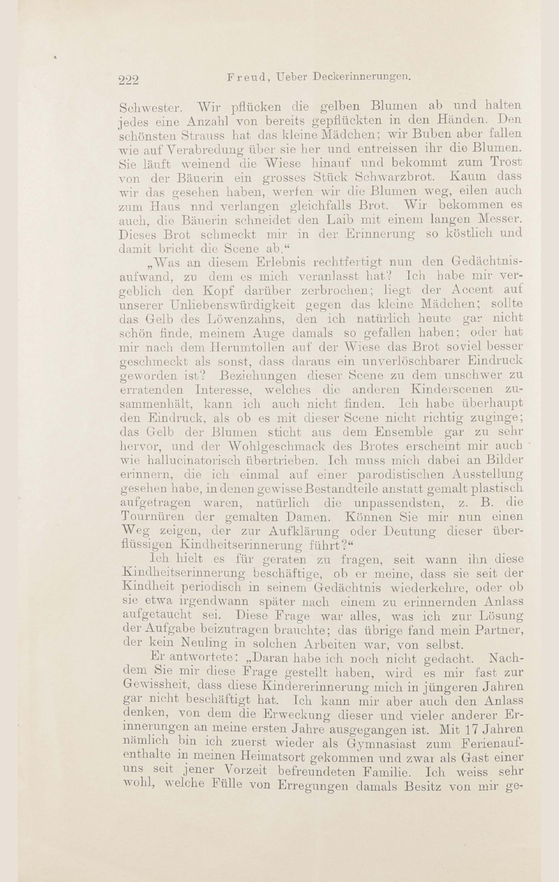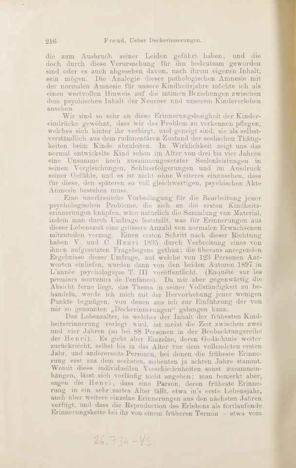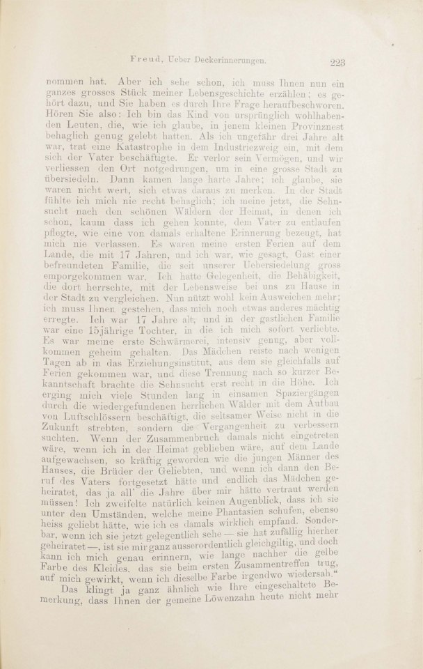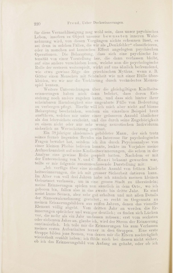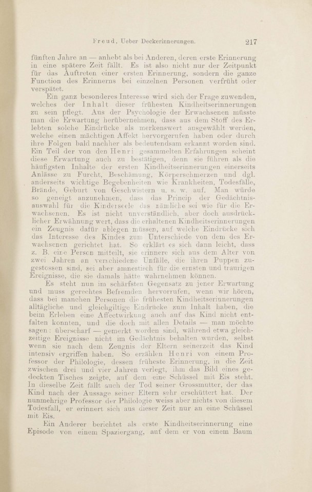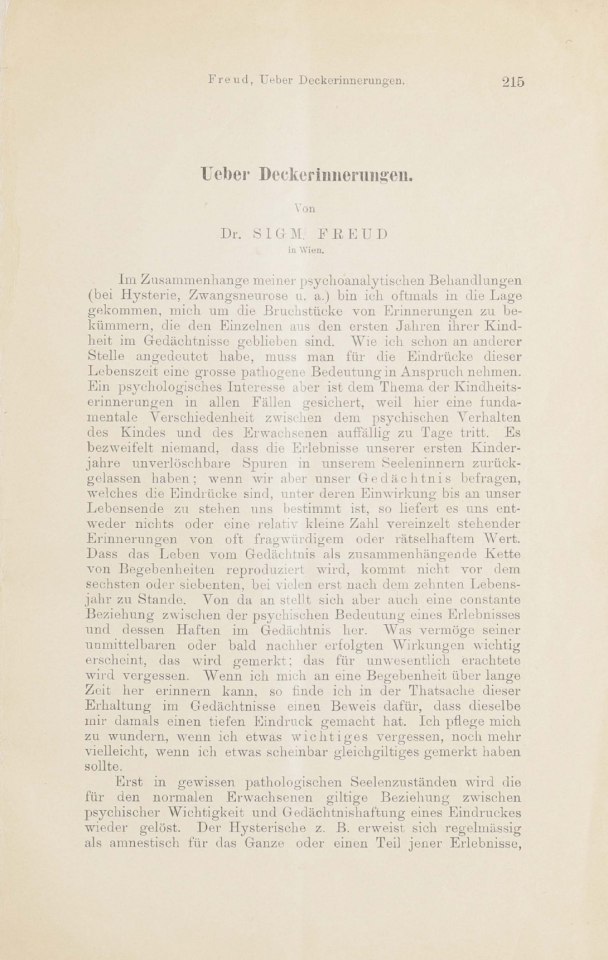 der normalen Amnesie fiir unsere Kindheitsjahre möchte ich als