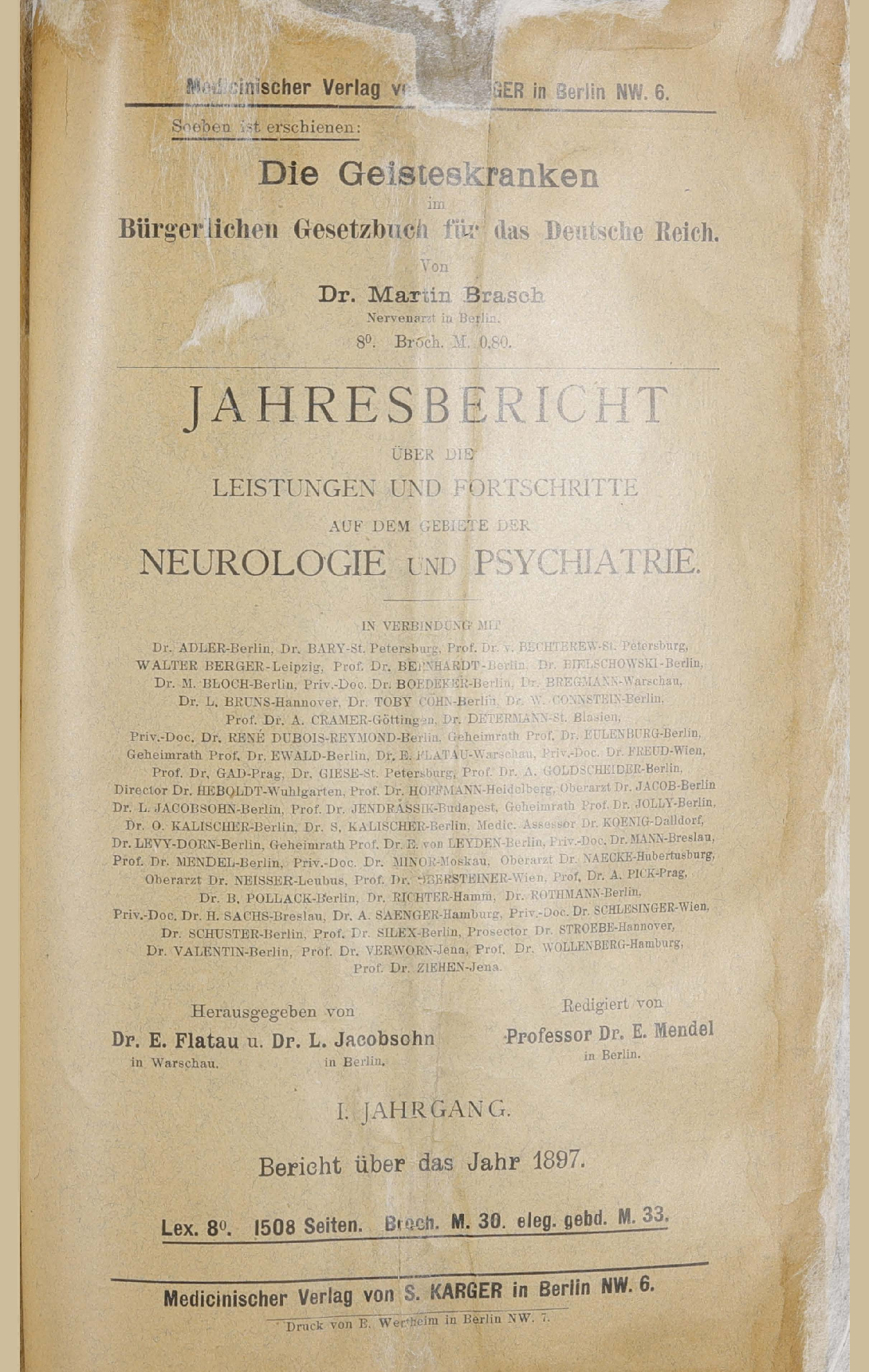 | Dr. E. Flatau u. Dr. L. Jacobsohn Professor Dr. E. Mendel |