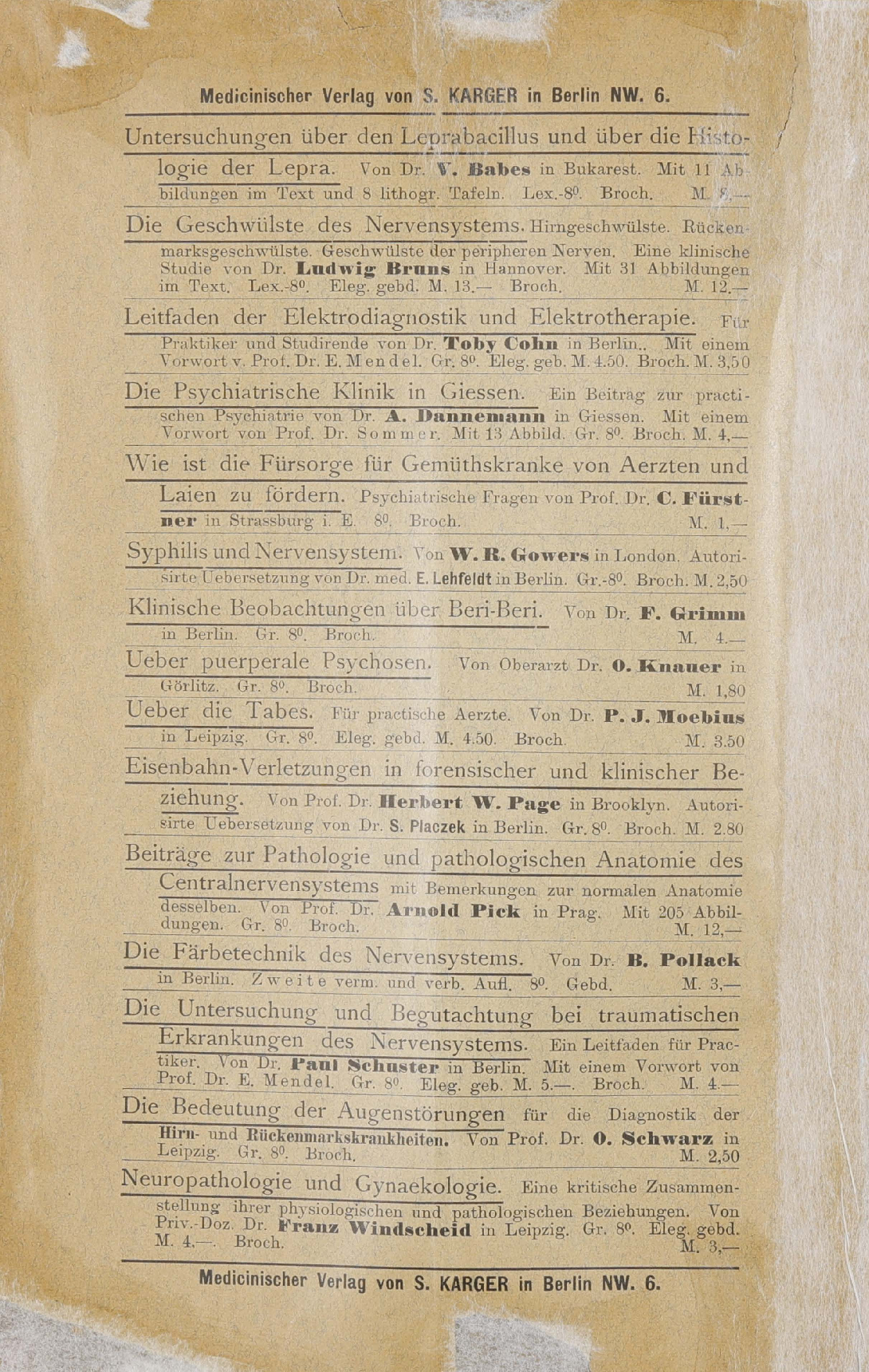 NR Prof. Dr. E. Mendel. Gr. 80. Eleg. geb. M. 4.50. Broch. М. 3,50