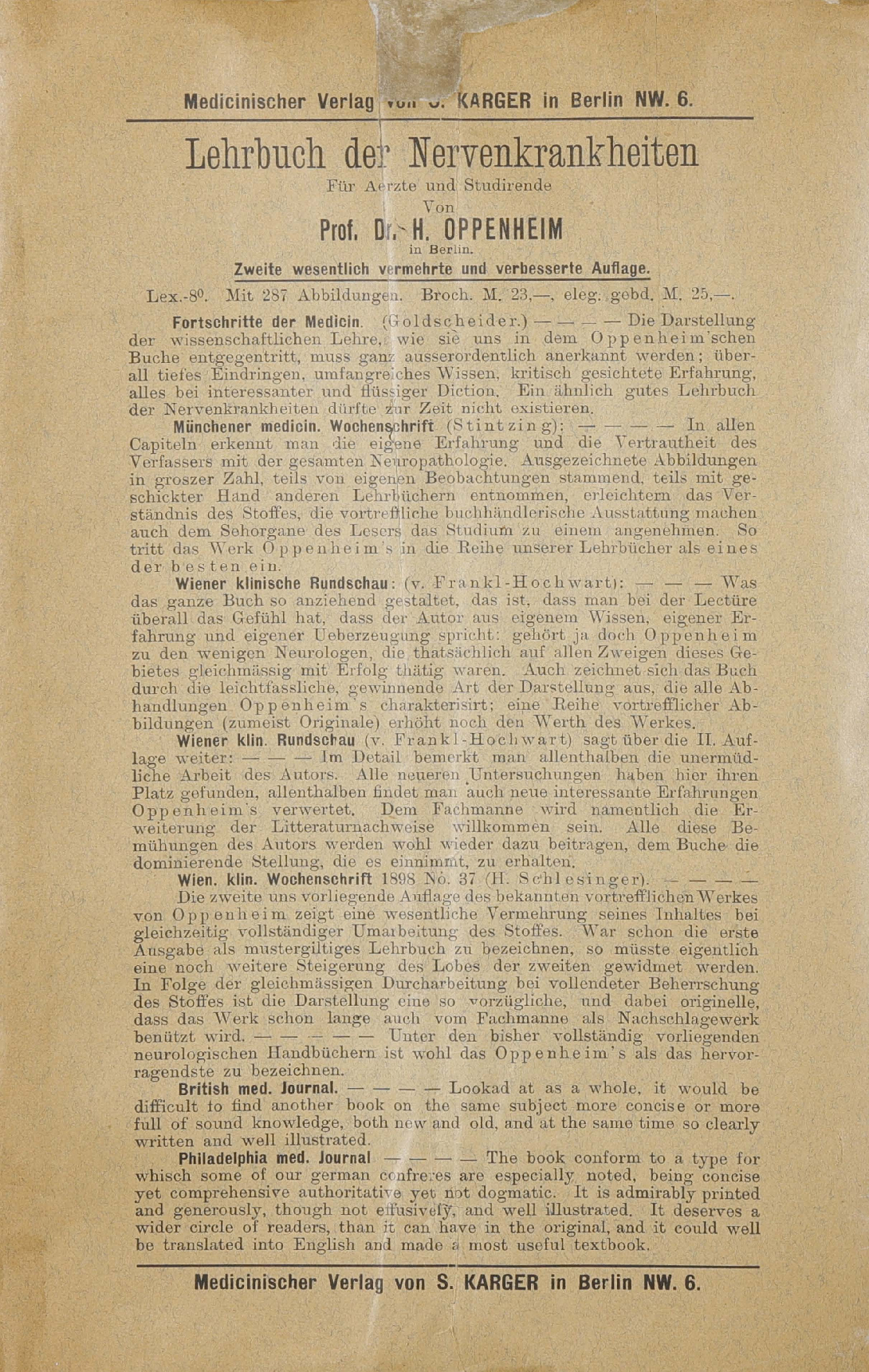 Medicinischer Verlag von S. KARGER in Berlin NW. 6.