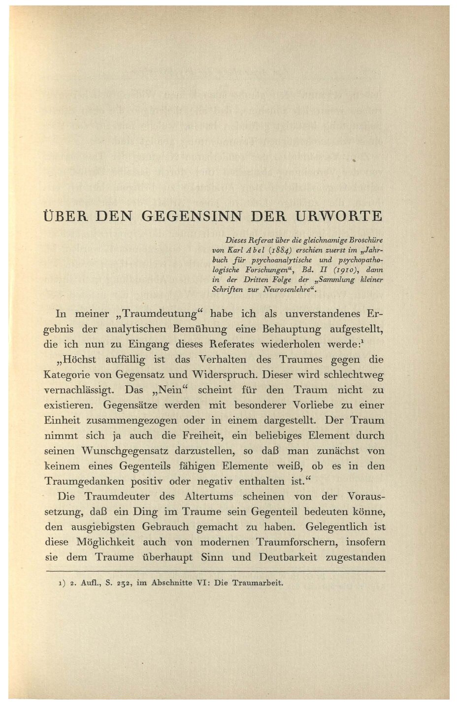 von Karl Abel (1884) erschien zuerst im „Jahrbuch für psychoanalytische und psychopathologische Forschungen“, Bd. II (1910), dann