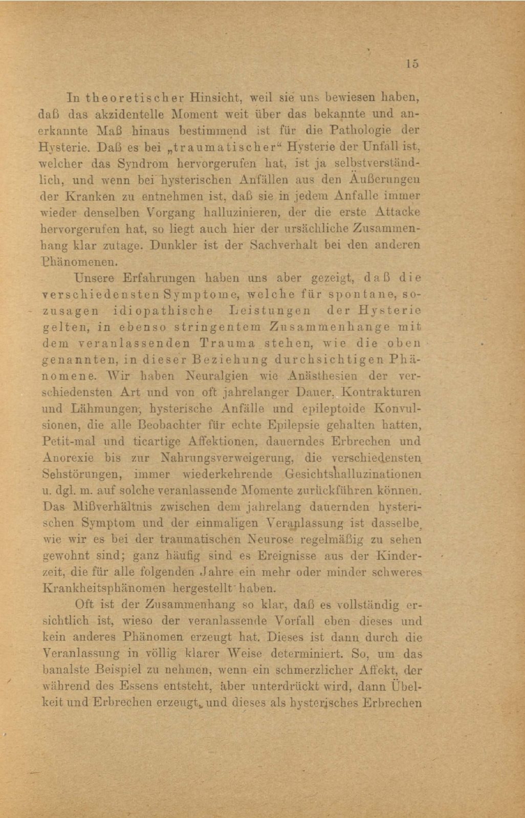 gerückt worden sind. Wir haben die Ätiologie der Hysterie nur