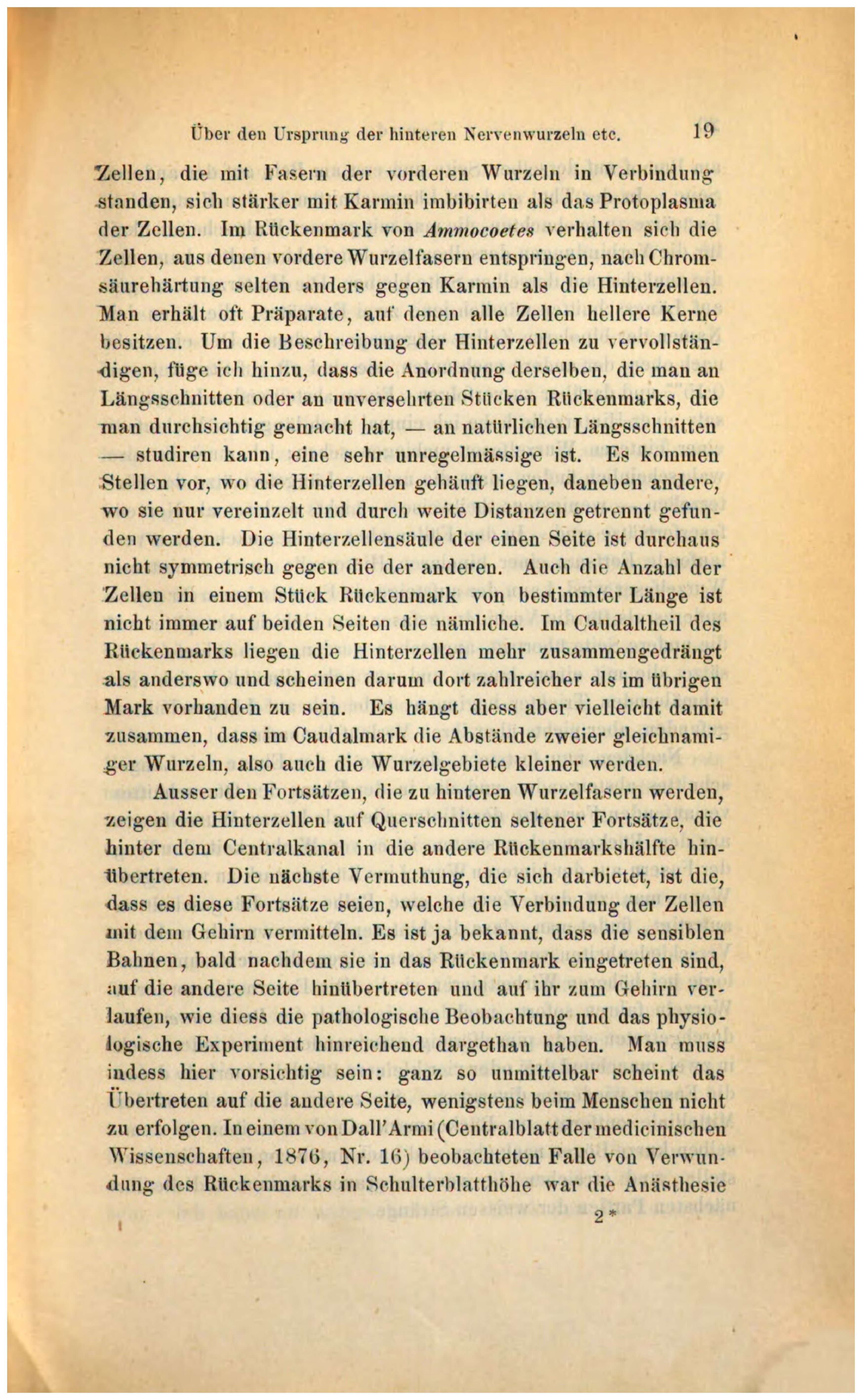 zu nennen. Mit der Deutung dieser Hinterzellen also im Rückenmark