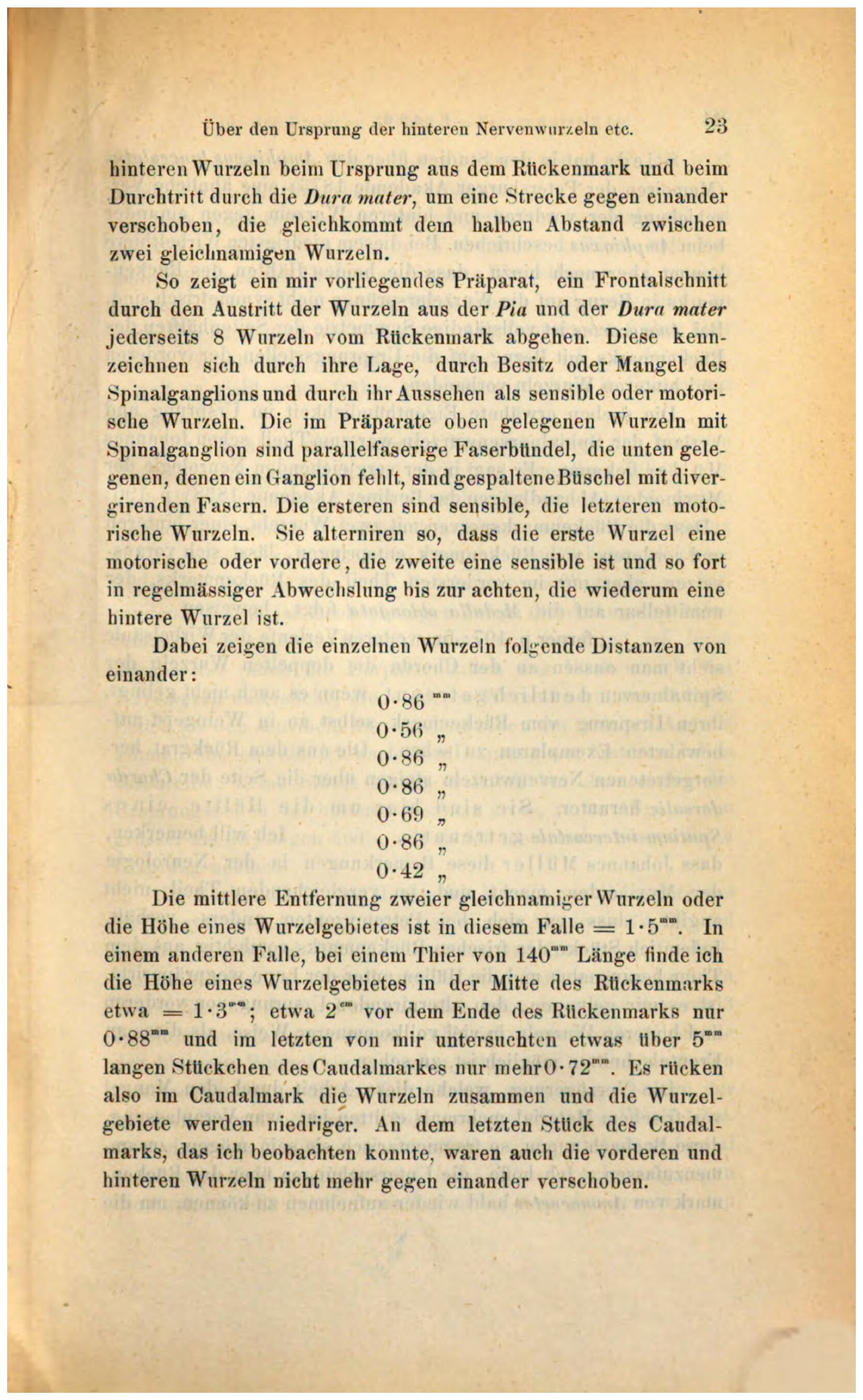 Fasern der hinteren Wurzel aber nur in einzelnen Fällen beobachtet“