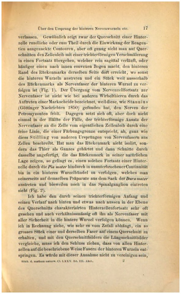 Hinterzellen als Fasern der hinteren Wurzeln vorhanden wären. Aber ein