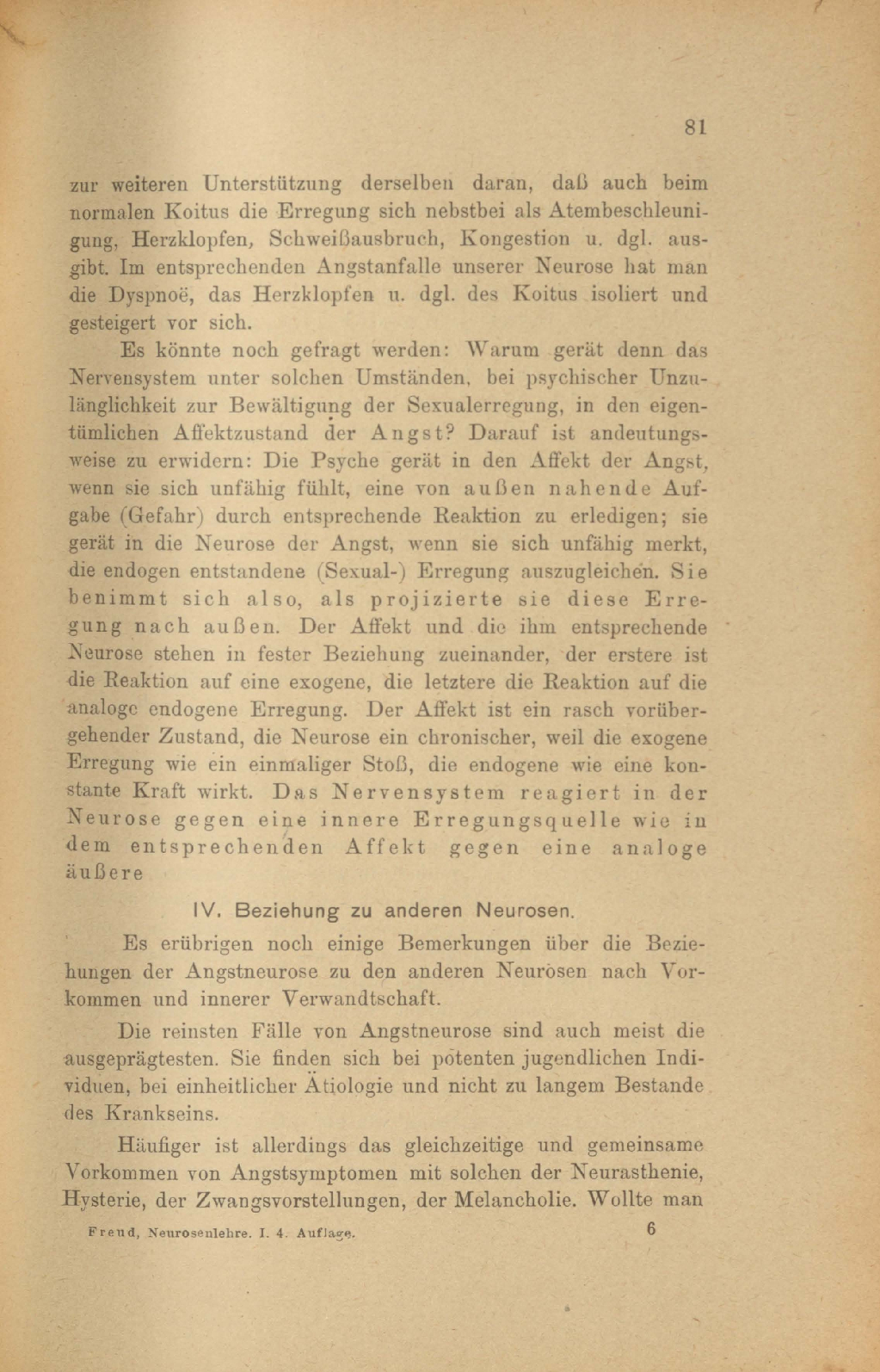 wie sie uns nach solcher Sonderung erübrigt.Ich nenne diesen Symptomenkomplex , Angstneurose“, weil