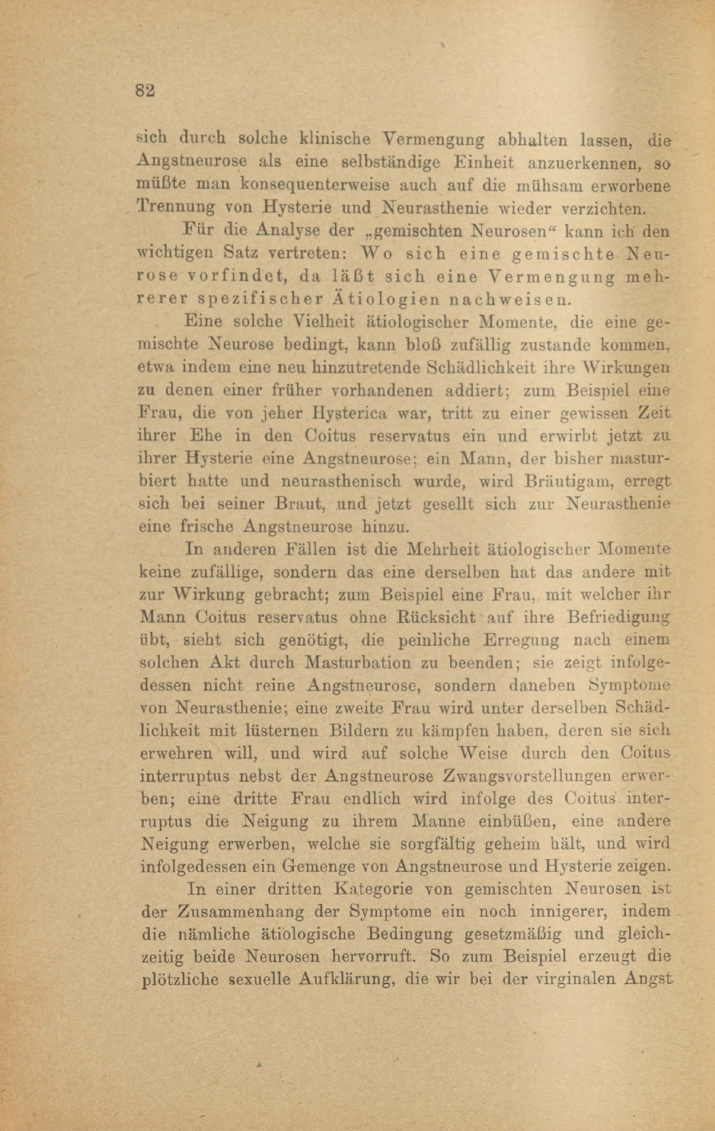 infolgedessen ein Gemenge von Angstneurose und Hysterie zeigen.In einer dritten Kategorie von gemischten Neurosen ist