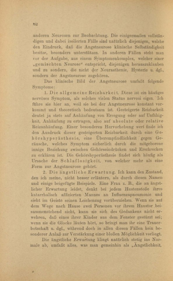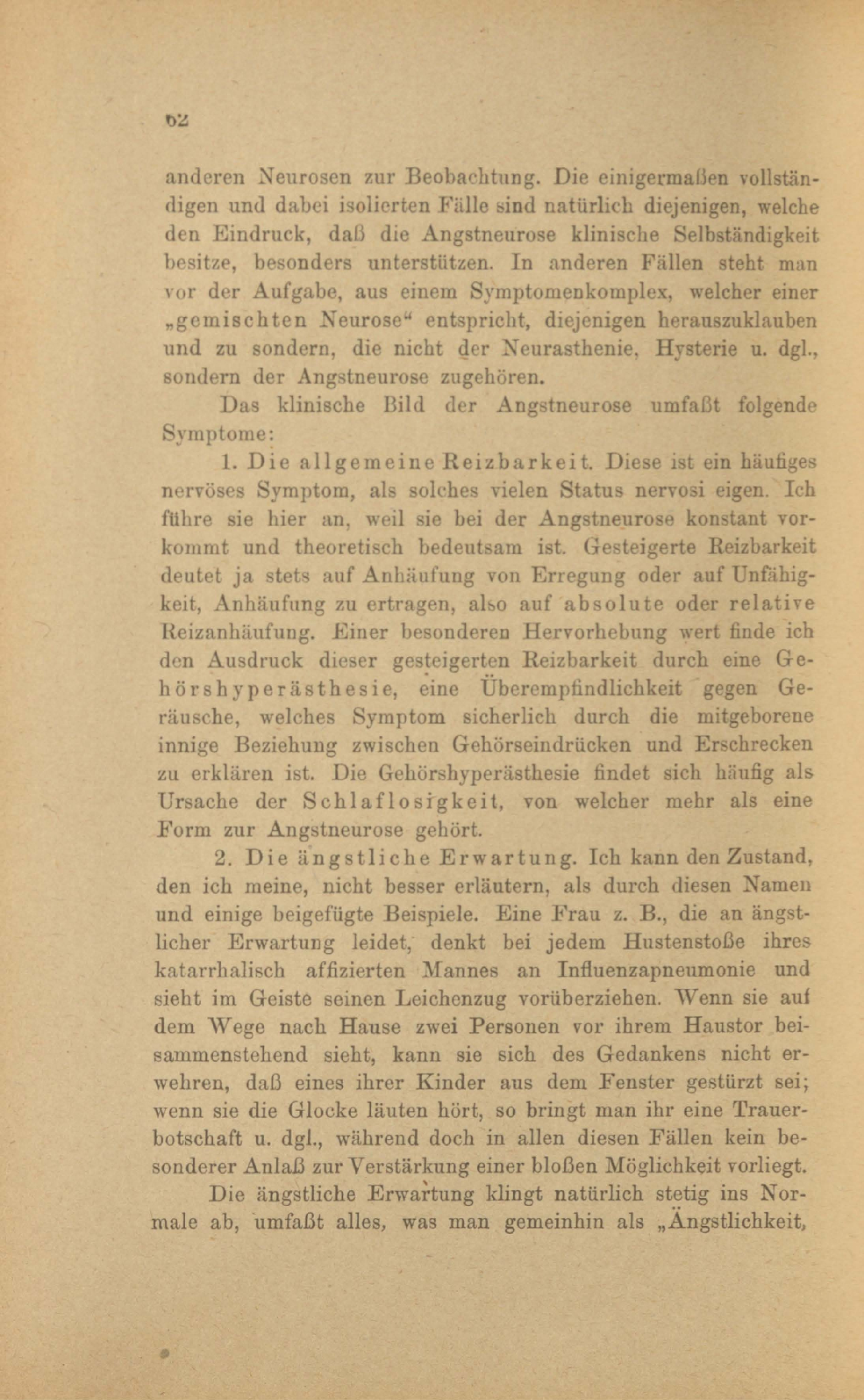 Form zur Angstneurose gehört.2. Die ängstliche Erwartung. Ich kann den Zustand,