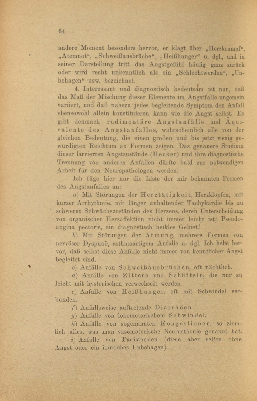sondern der Angstneurose zugehören.Das klinische Bild der Angstneurose umfaßt folgende