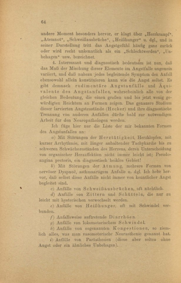 allgemeiner Behauptungen zu erleichtern.1. Klinische Symptomatologie der Angstneurose.