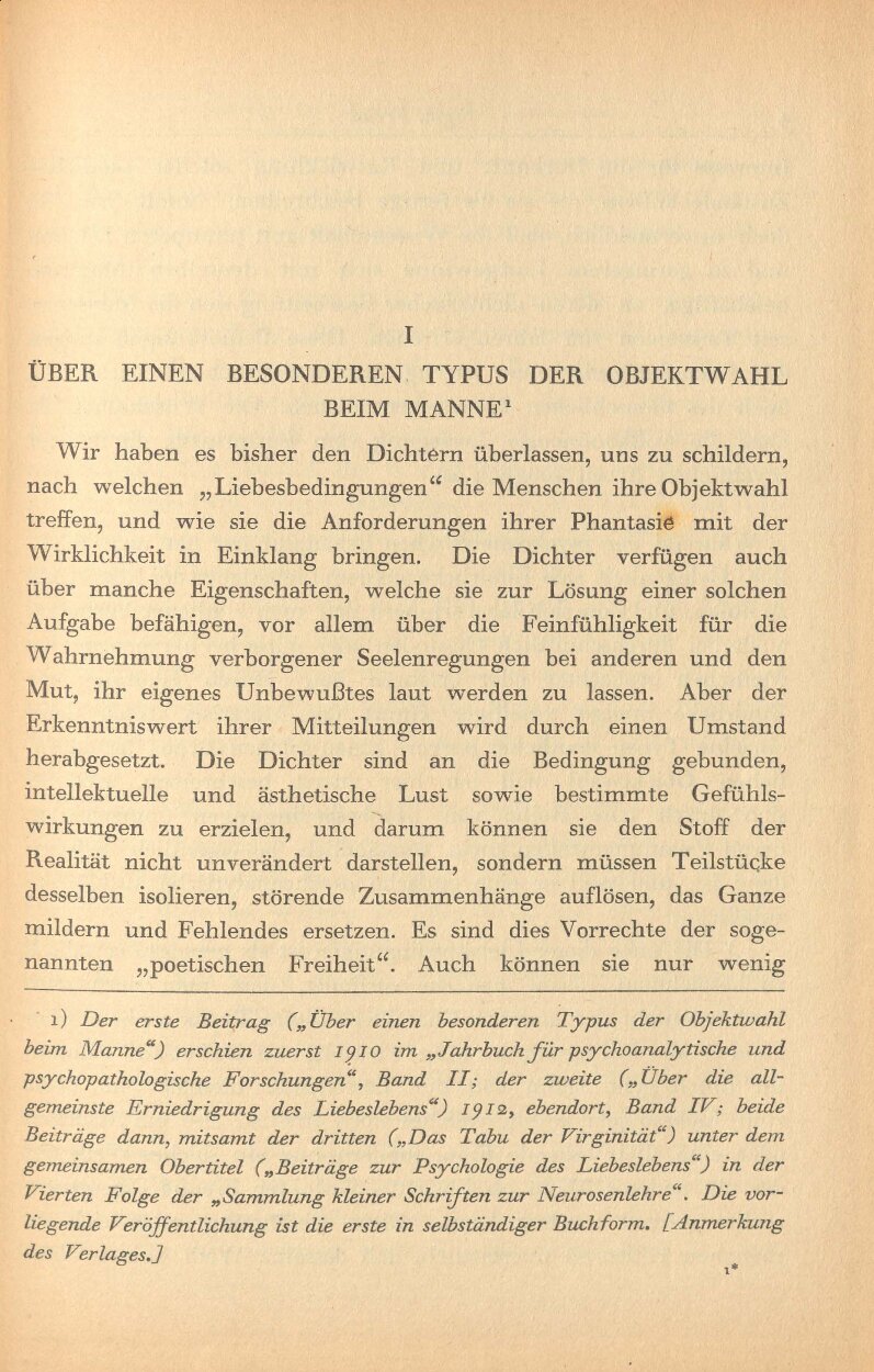1)Der erste Beitrag („Über einen besonderen Typus der Objektwahl