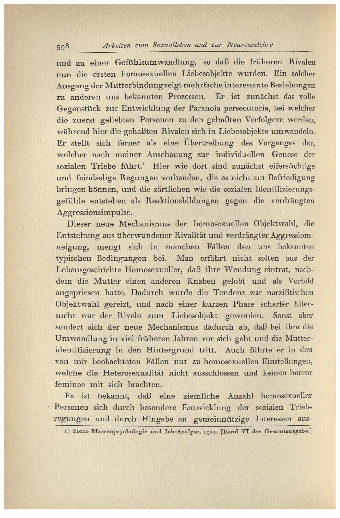 1) Siehe Massenpsychologie und Ich-Analyse, 1921. [Band VI der Gesamtausgabe.]
