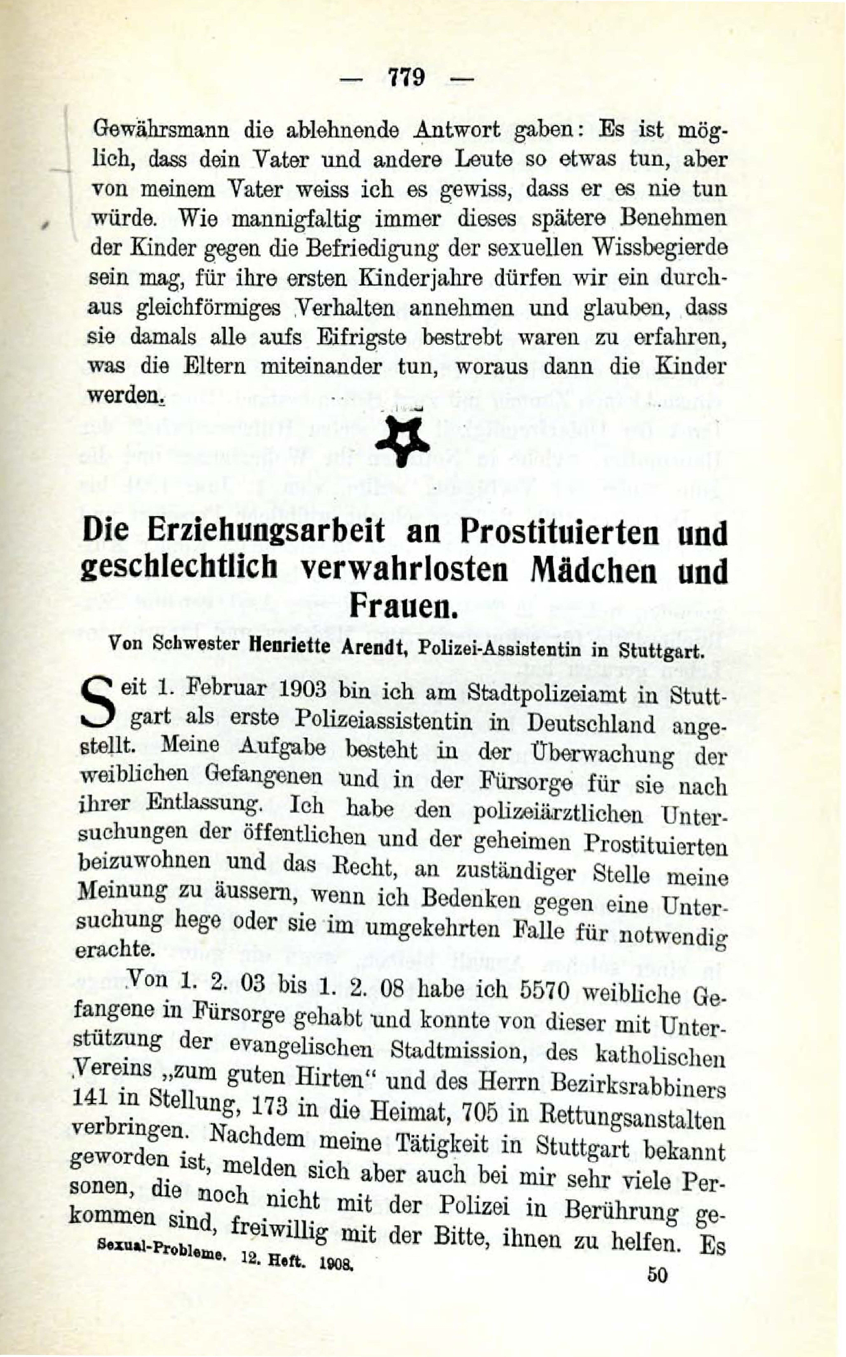 Von Schwester Henriette Arendt, Polizei-Assistentin in Stuttgart.