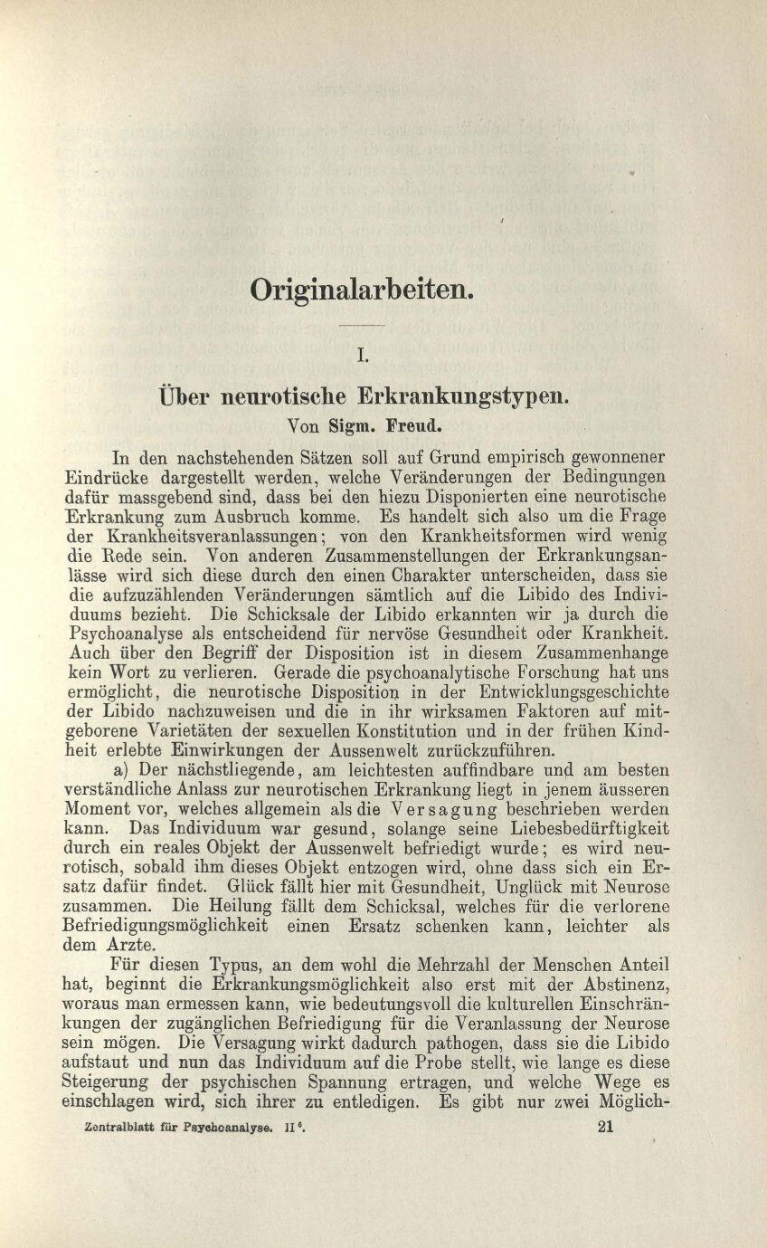 zu zwei Hauptsätzen der Neurosenlehre, die sich aus der Psychoanalyse