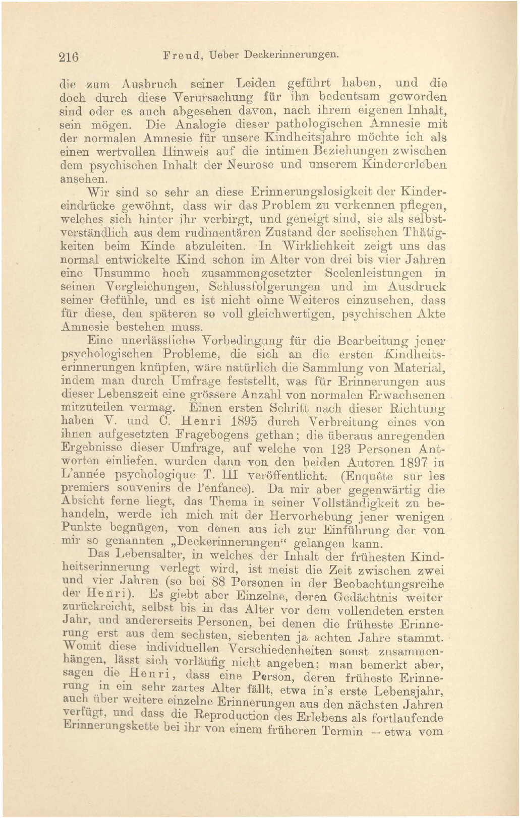 der normalen Amnesie für unsere Kindheitsjahre möchte ich als