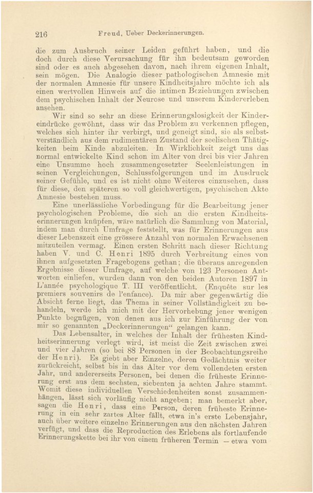 sagen die Henri, dass eine Person, deren friiheste Erinne-