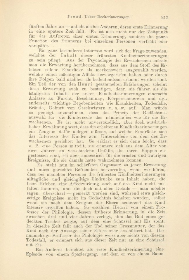 fünften Jahre an — anhebt als bei Anderen, deren erste Erinnerung