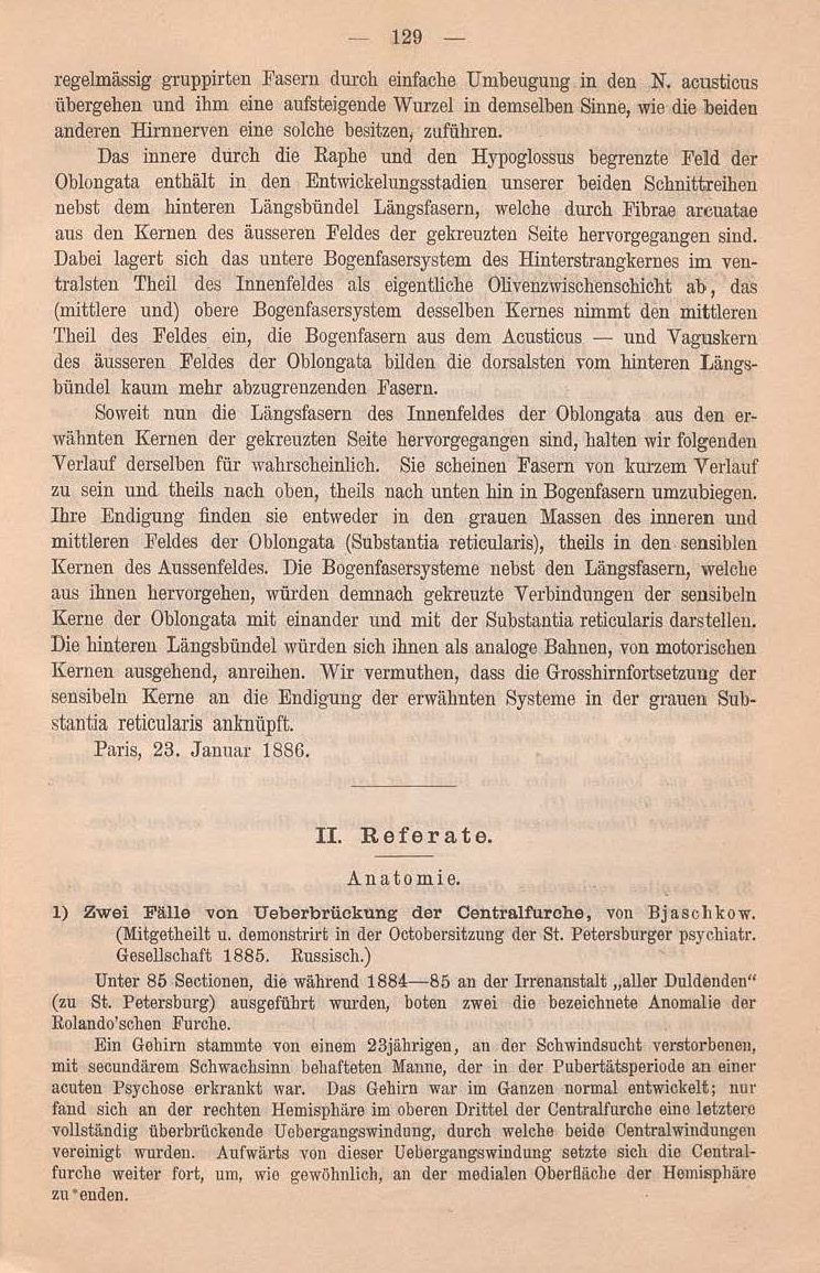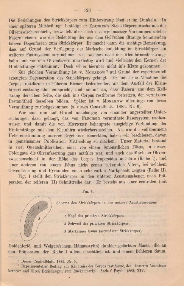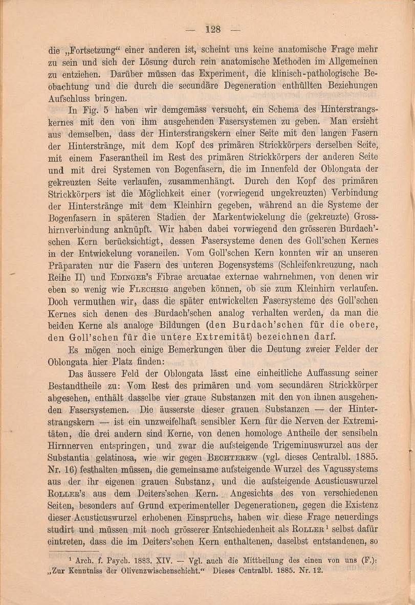 bahn und den Fasern zu den grossen Oliven noch Fasern zur Substantia reticularis.1 Dieses Centralblatt. 1885. Nr. 4.