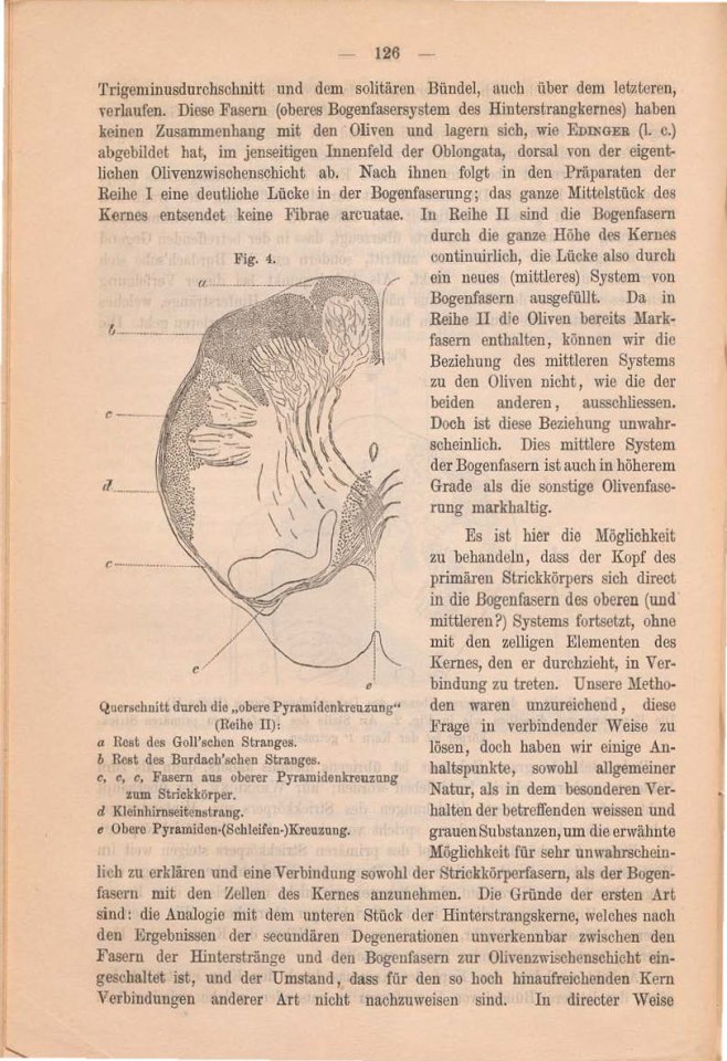 laufen (EDINGER’s Fibrae arcuatae anteriores) (Fig. 4).Wir haben im Vorstehenden einfache und leicht zu controlirende Verhält-