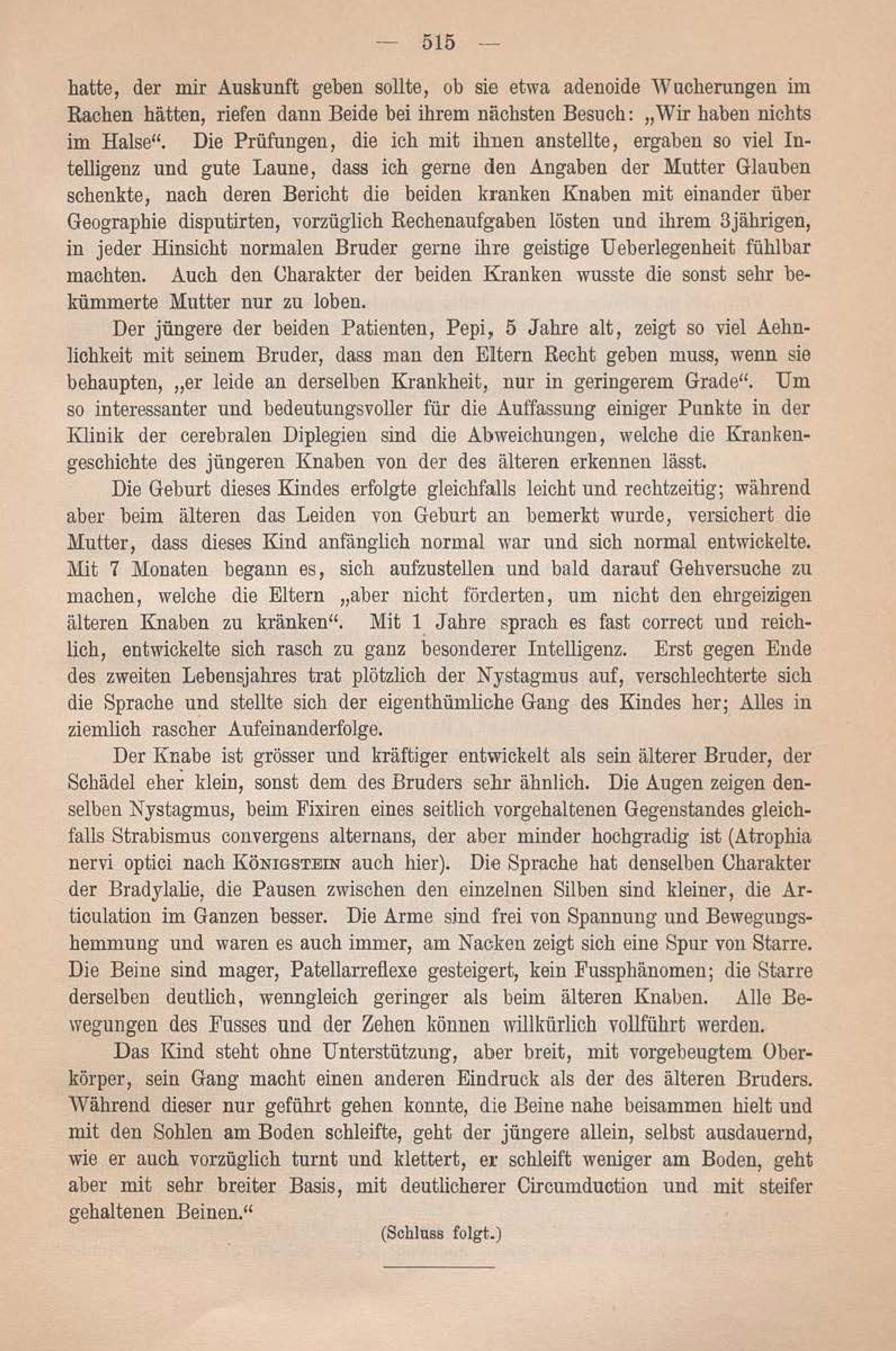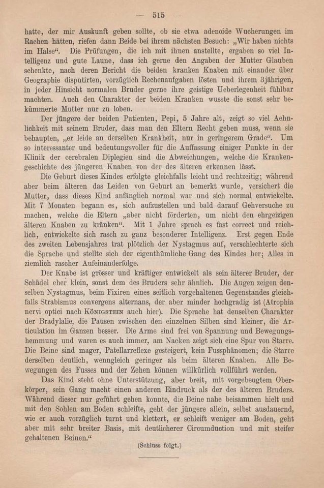 Affection, die ich unbedenklich zu den cerebralen Diplegien rechnen würde. Die