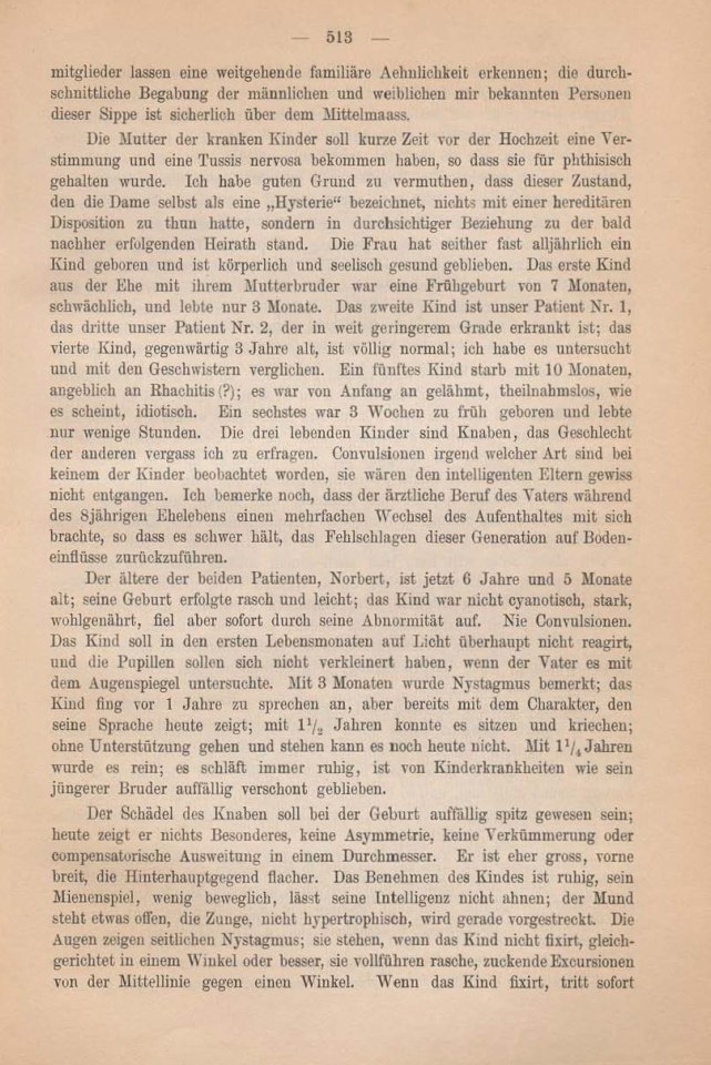 dem Augenspiegel untersuchte. Mit 3 Monaten wurde Nystagmus bemerkt; das