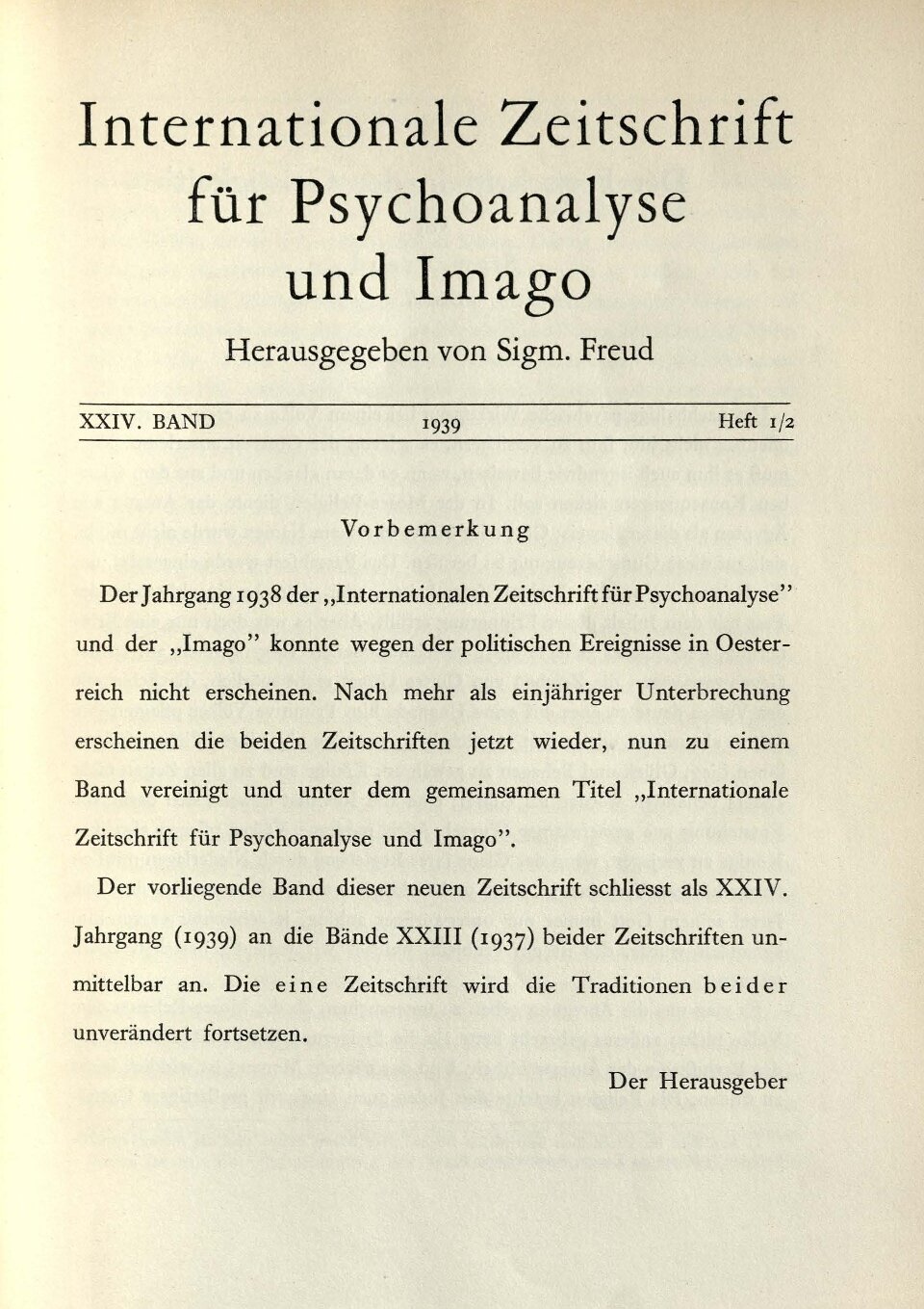 Der Jahrgang 1938 der „Internationalen Zeitschrift für Psychoanalyse“