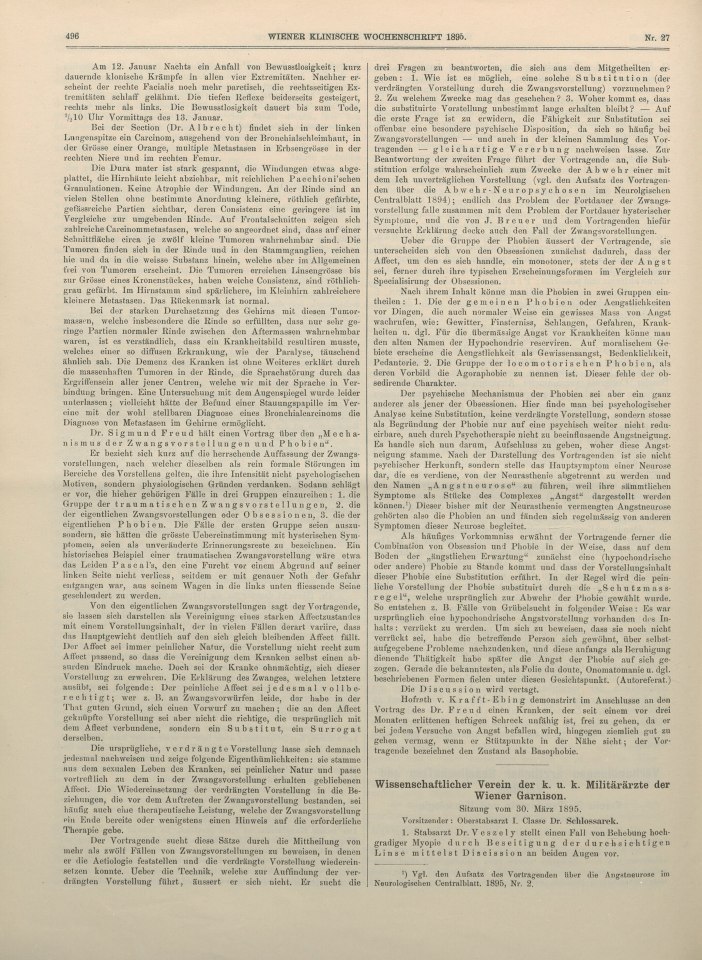 [...]1) Vgl. den Aufsatz des Vortragenden über die Angstneurose im Neurologischen Centralblatt. 1895, Nr. 2.