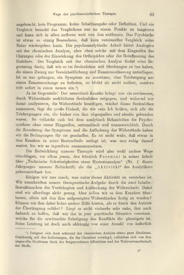einschlagen, vor allem jenen, den kürzlich Ferenczi in seiner Arbeit