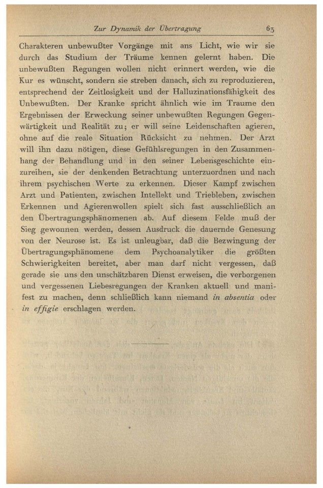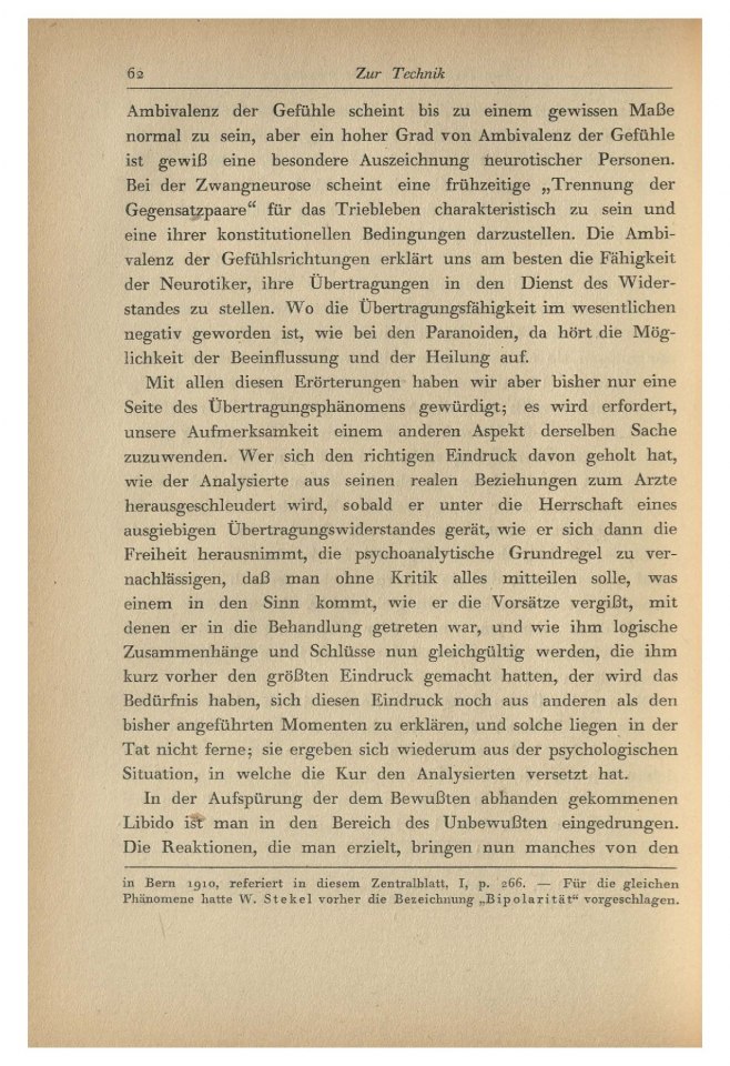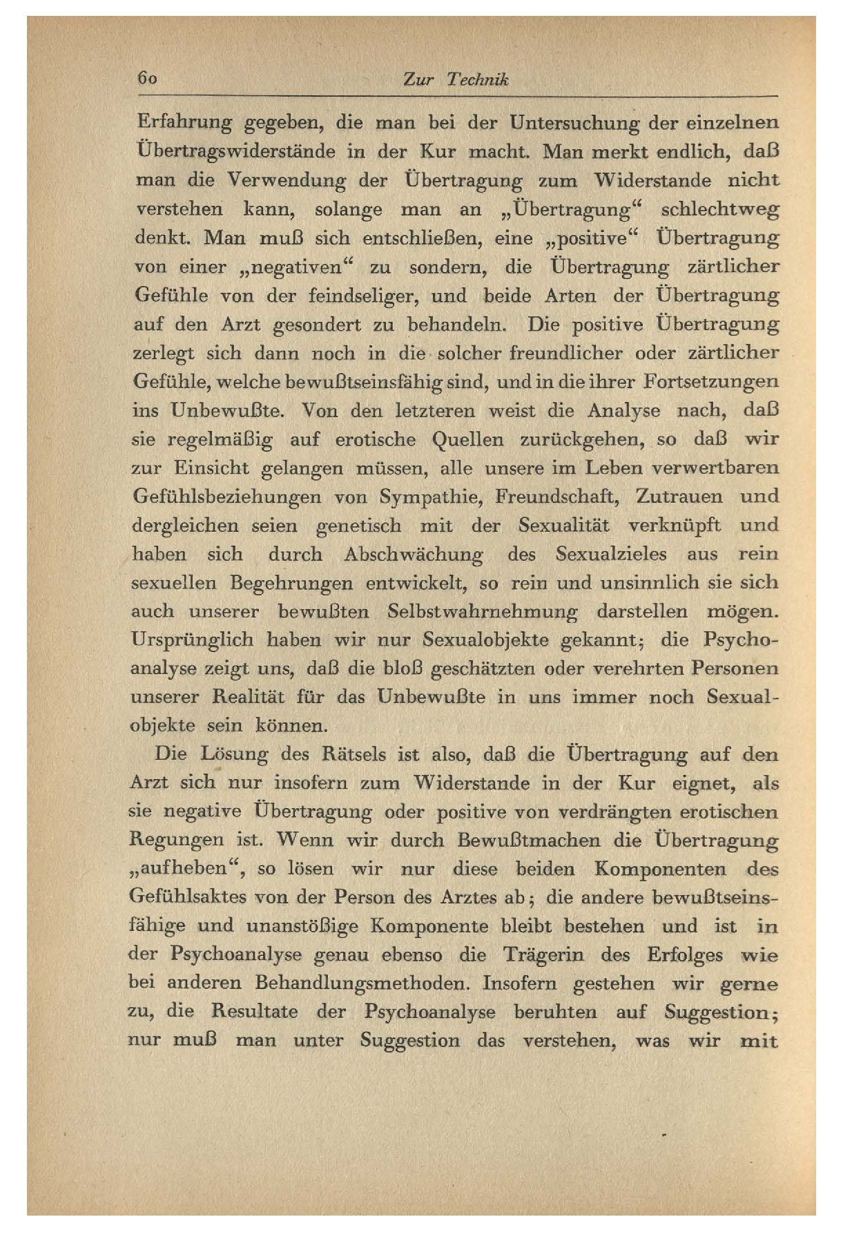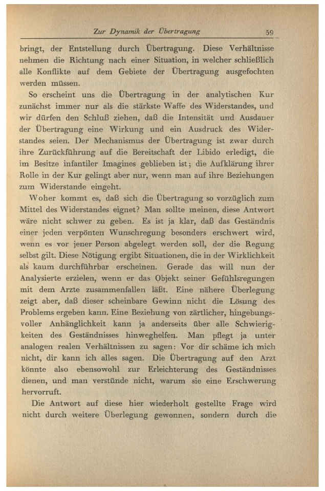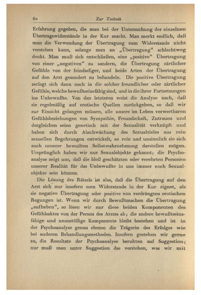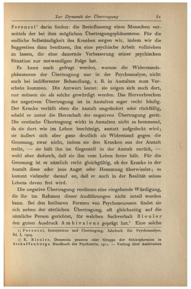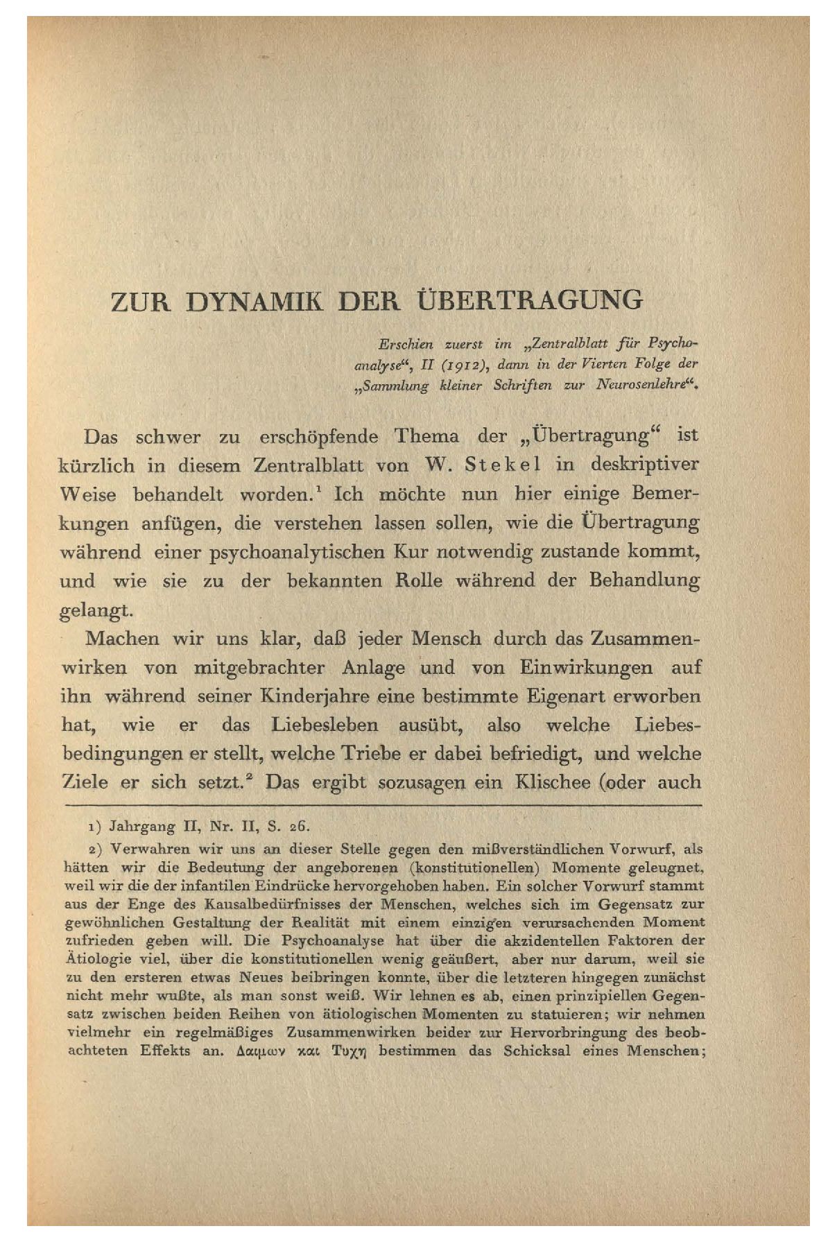 „Sammlung kleiner Schriften zur Neurosmlzhre“.Das schwer zu erschöpfende Thema der „Übertragung“ ist