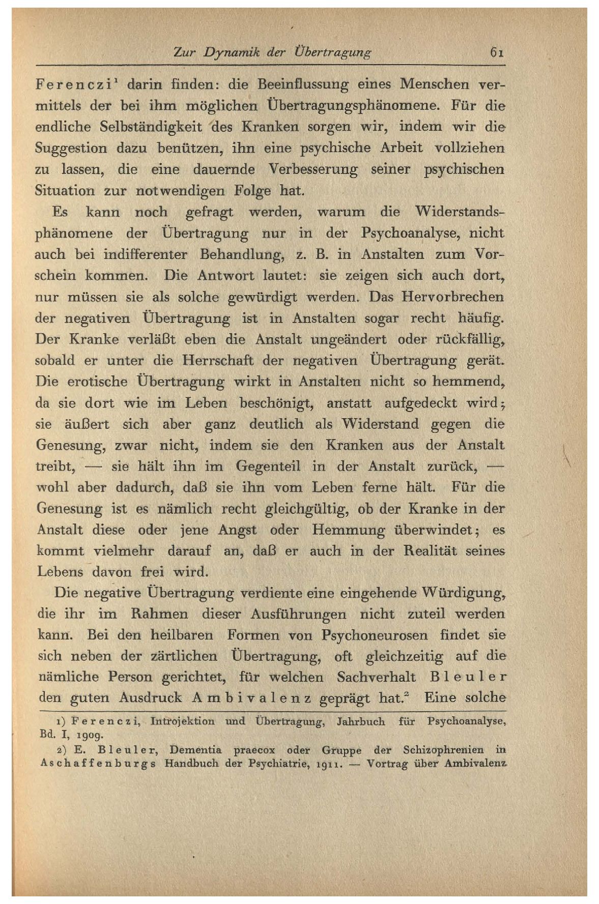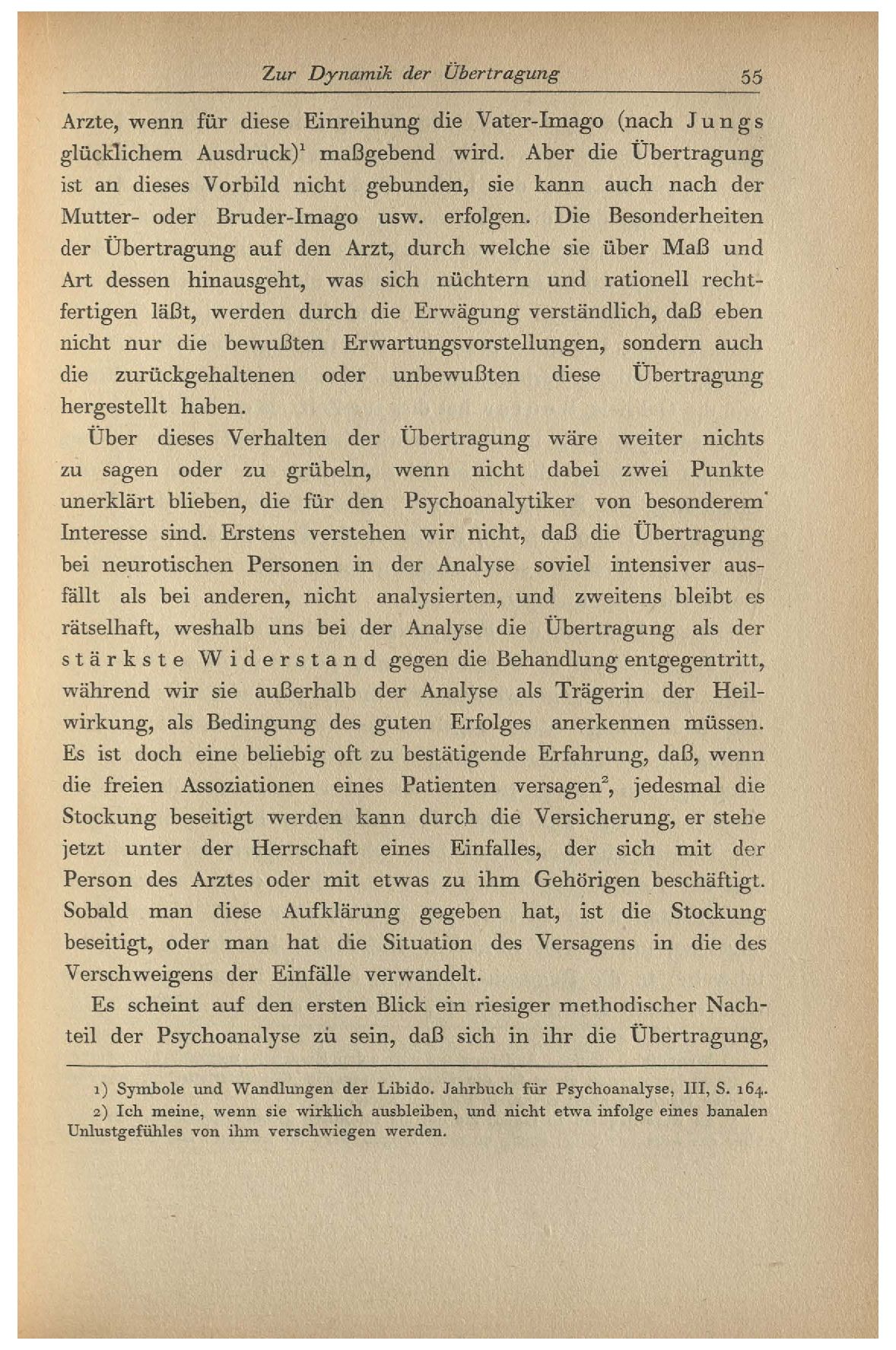 teil der Psychoanalyse Zü sein, daß sich in ihr die Übertragung,;) Symbole und Wandlungen der Libido. Jahrbuch für Psychoanalyse, III, S. 164.