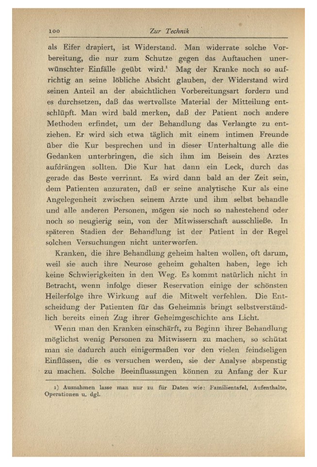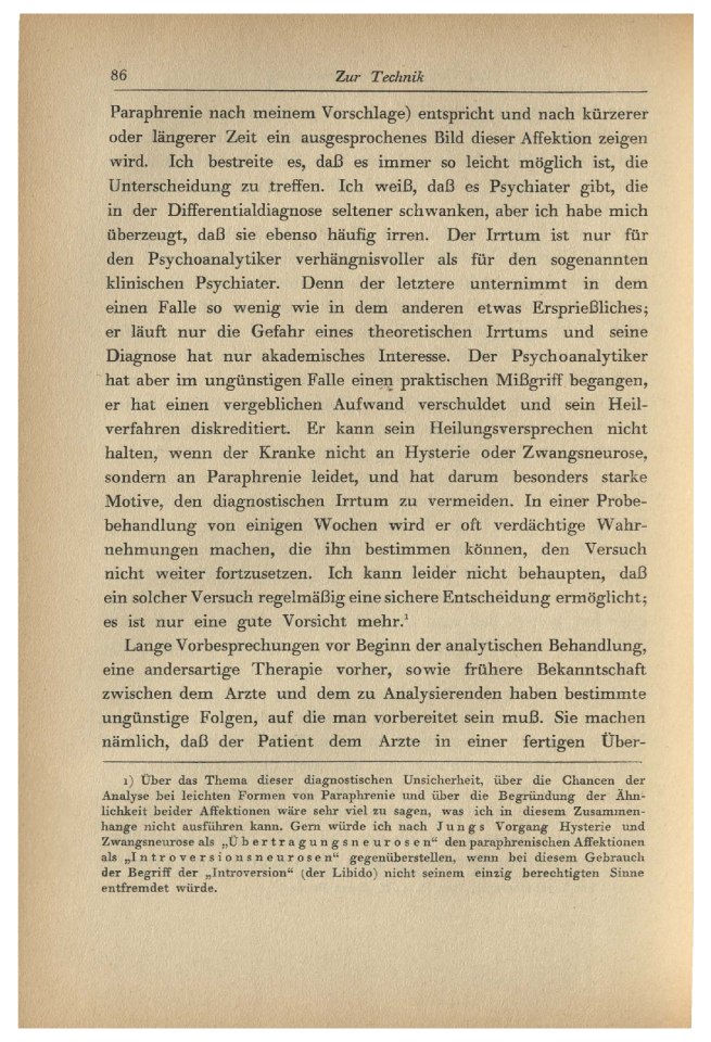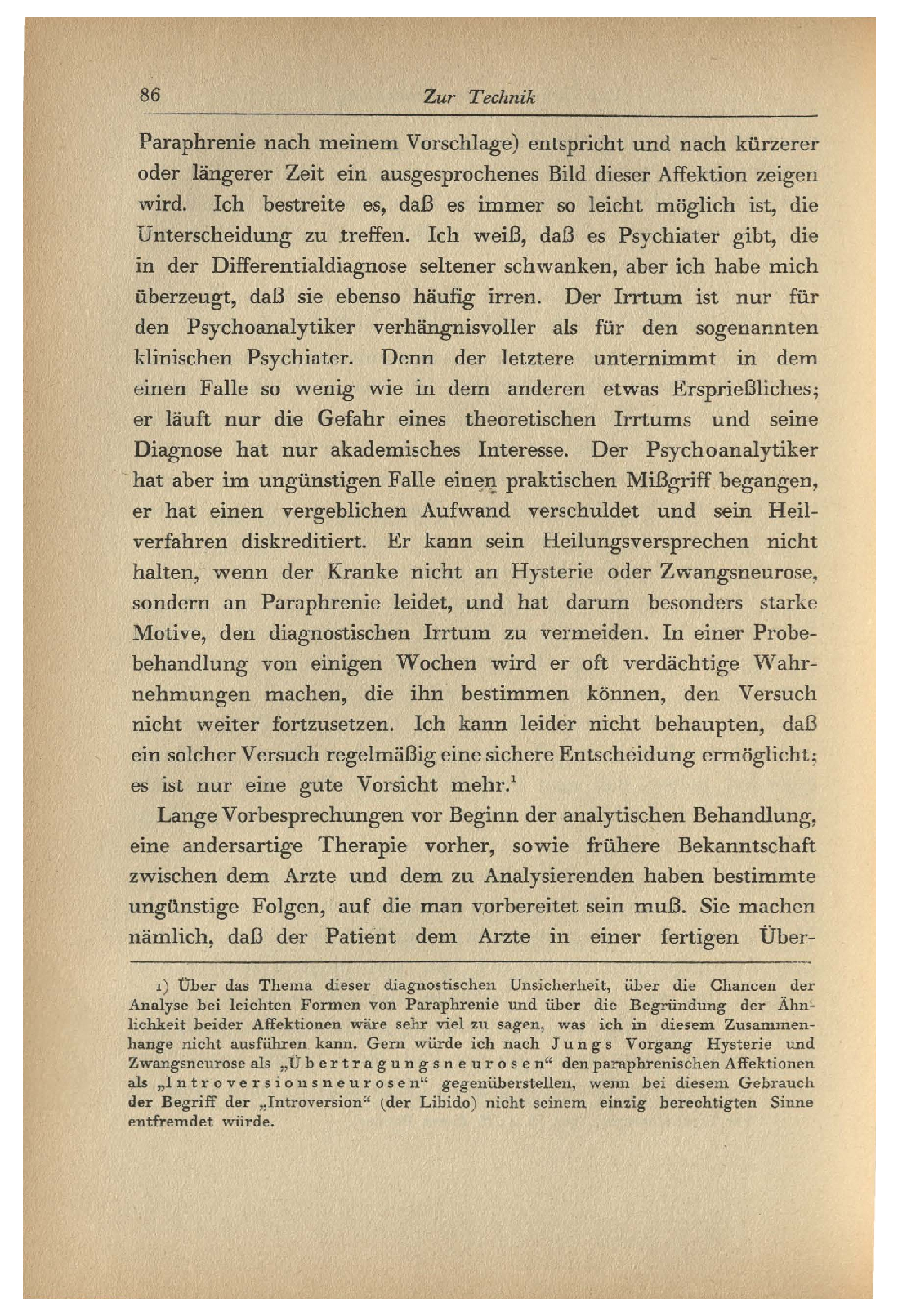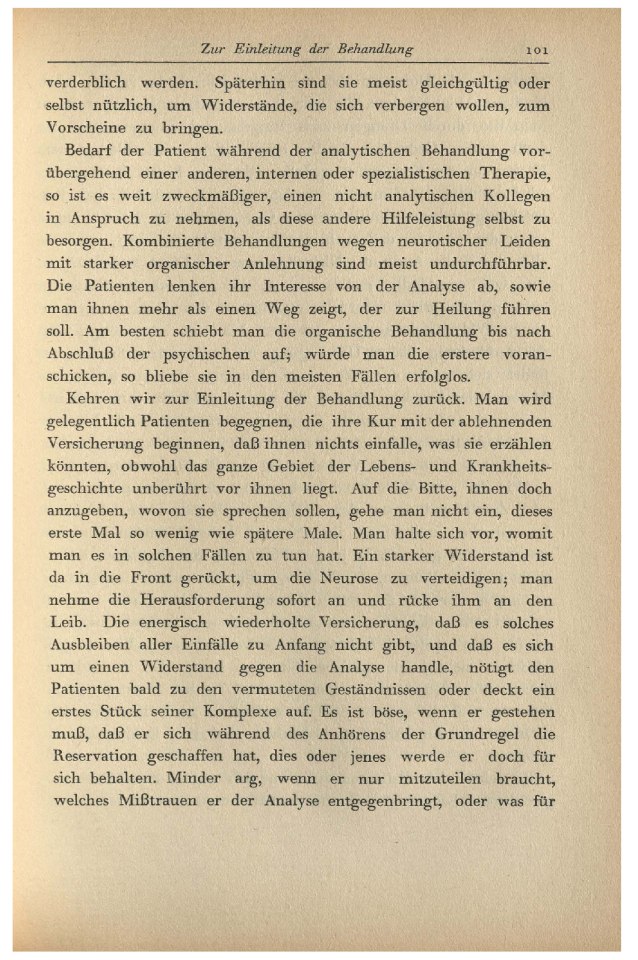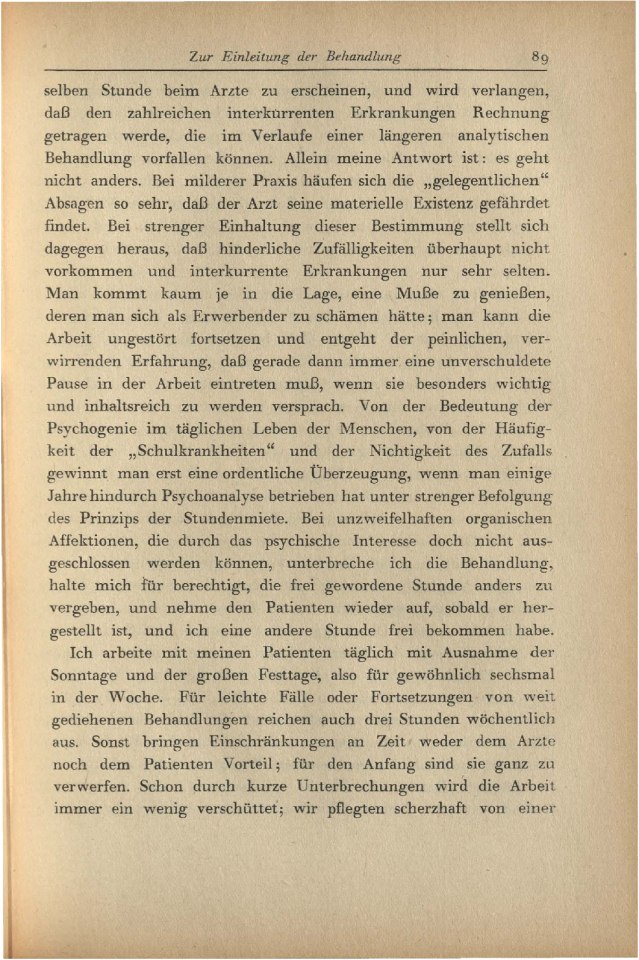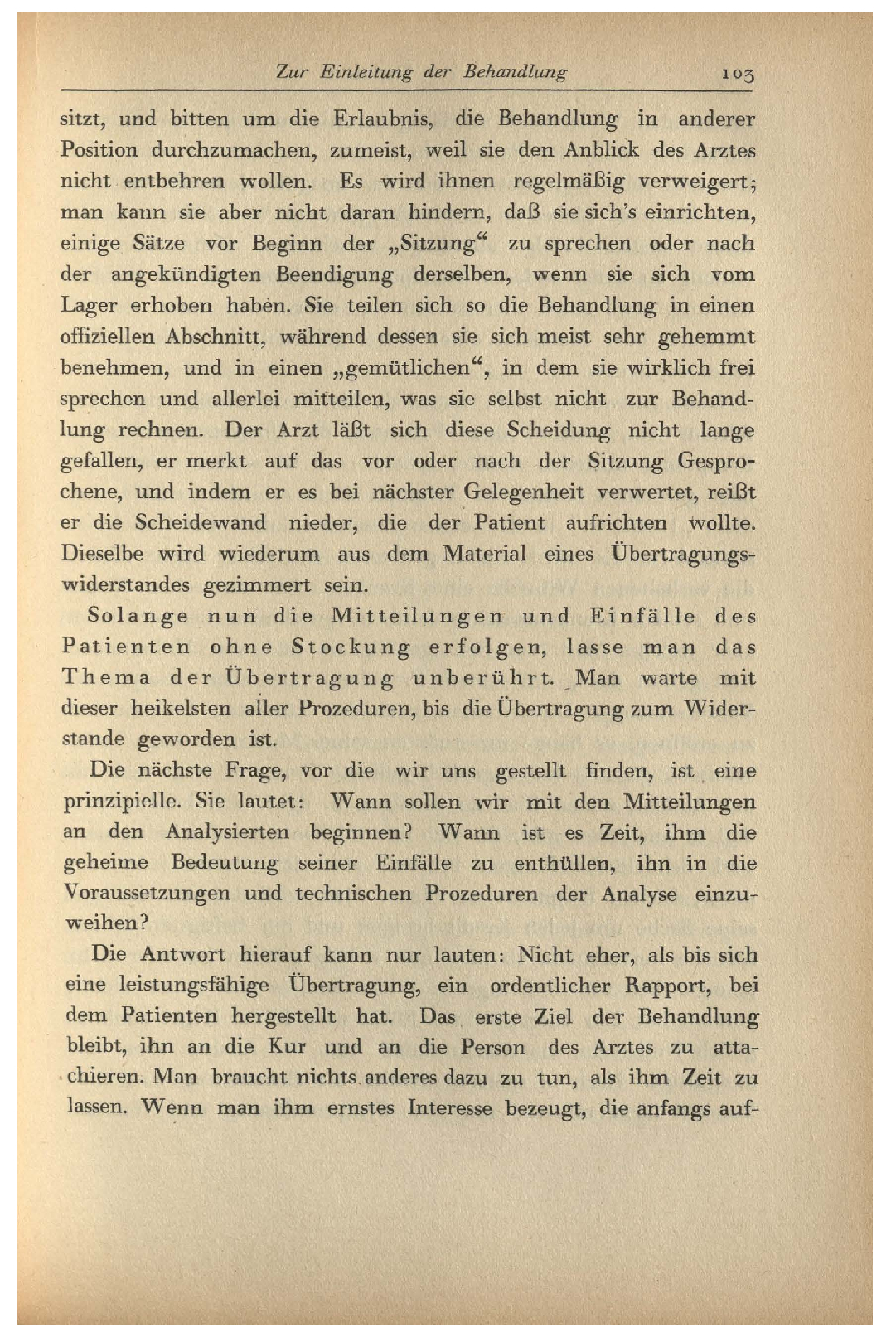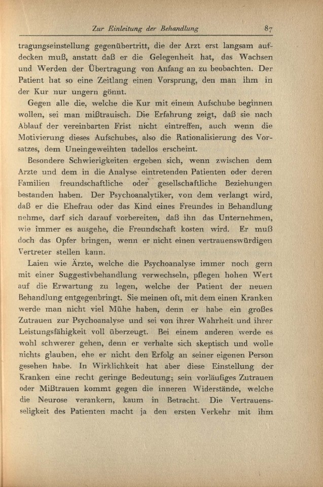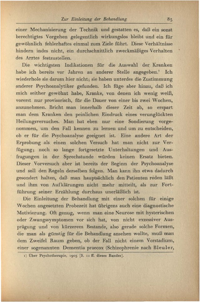 es ist nur eine gute Vorsicht mehr.*Lange Vorbesprechungen vor Beginn der analytischen Behandlung,
