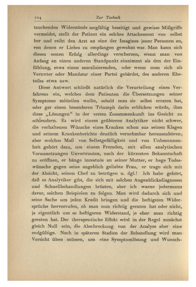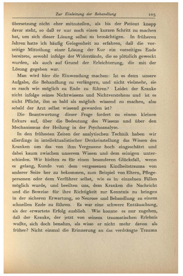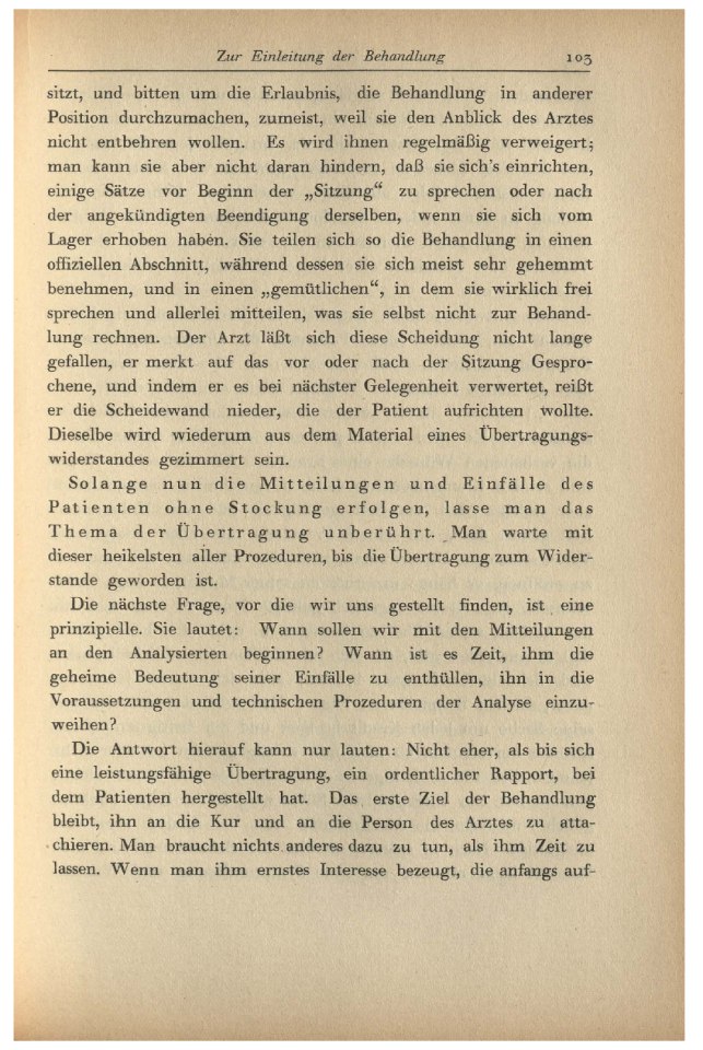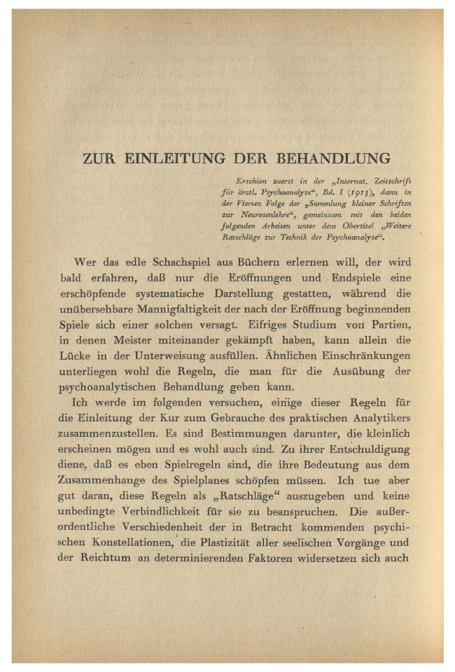Ratschläge zur Technik der Psychoanalyse“.Wer das edle Schachspiel aus Büchern erlernen will, der wird