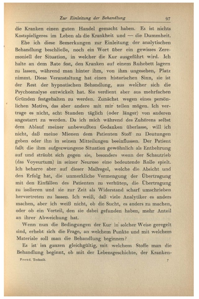 behandlung, keine Psychoanalyse. Den letzteren Namen verdient