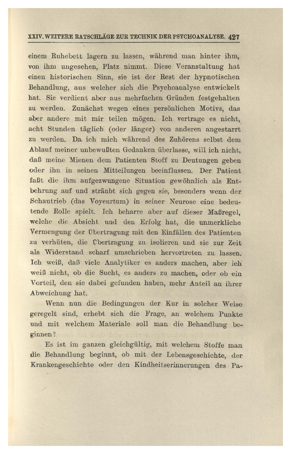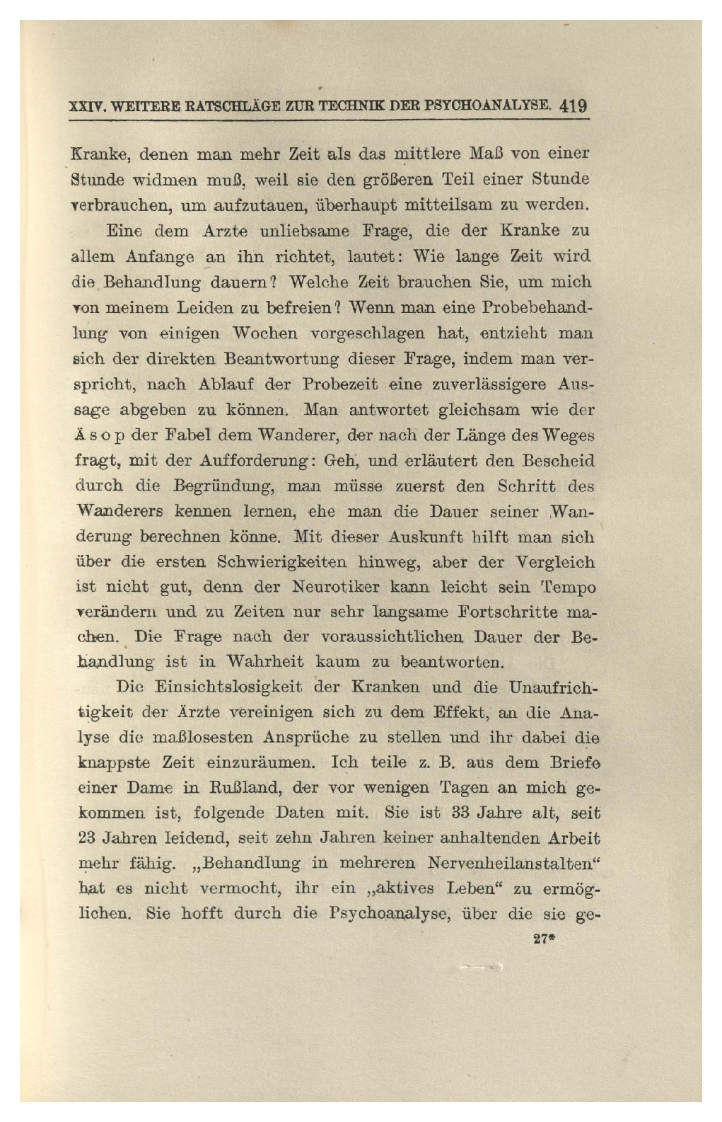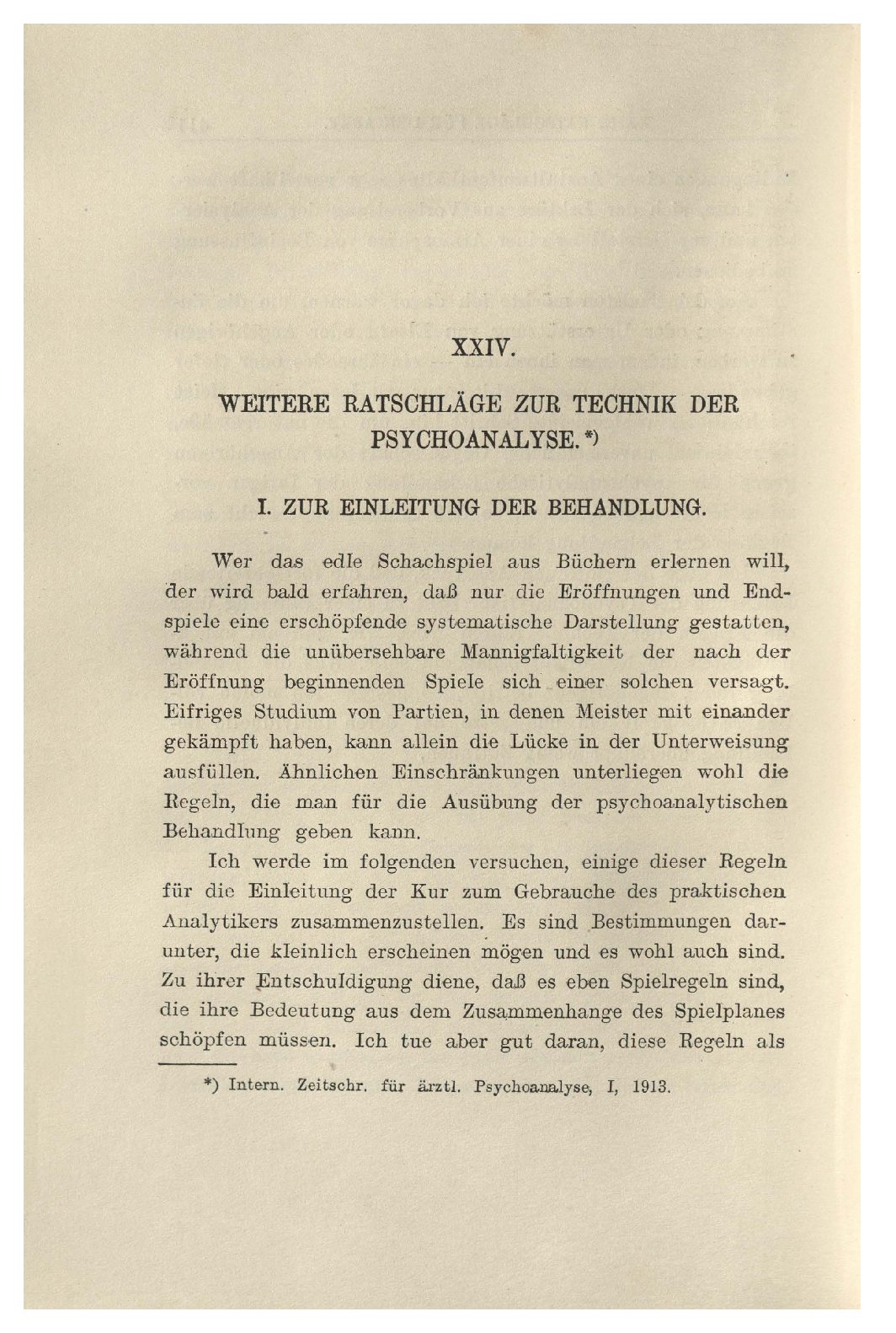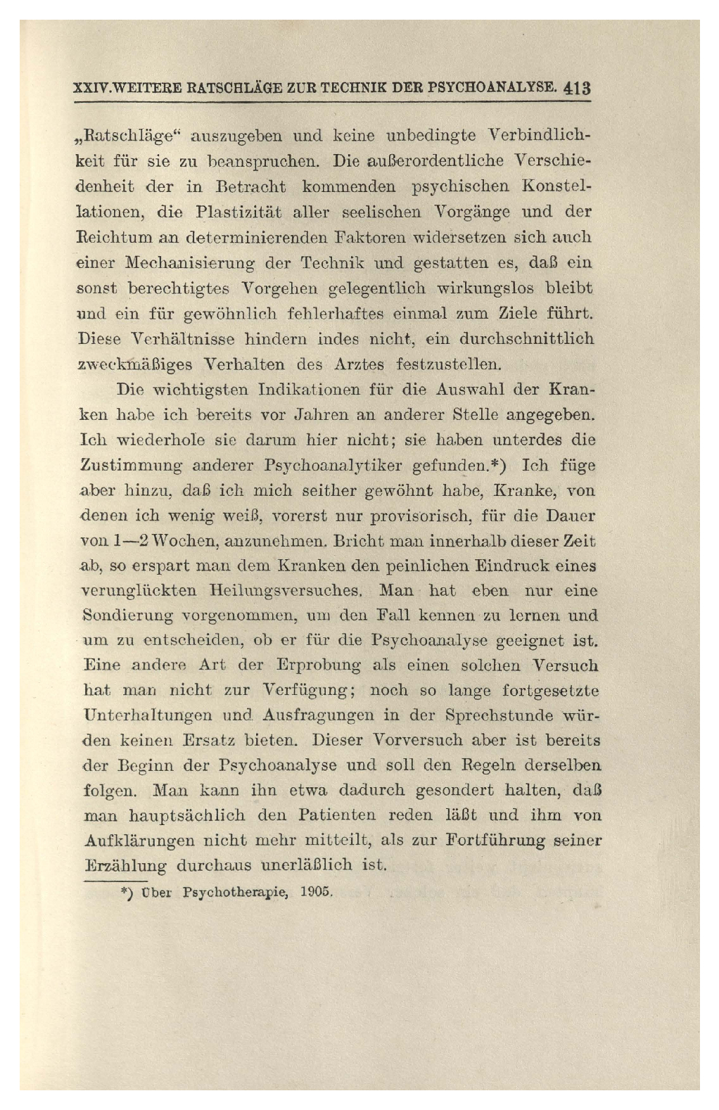 XXIV.WEITERE RATSCHLAGE ZUR TECHNIK DER PSYCHOANALYSE. 413