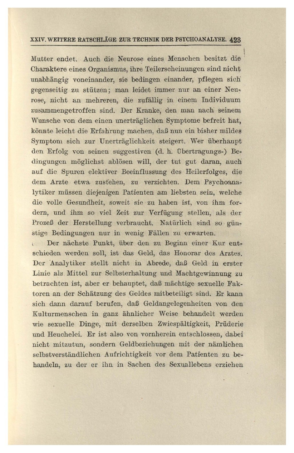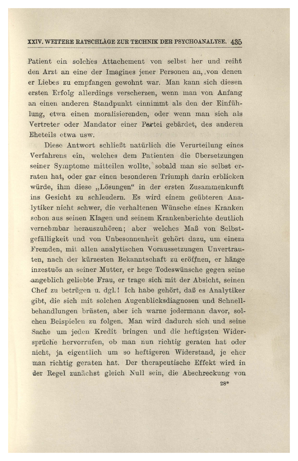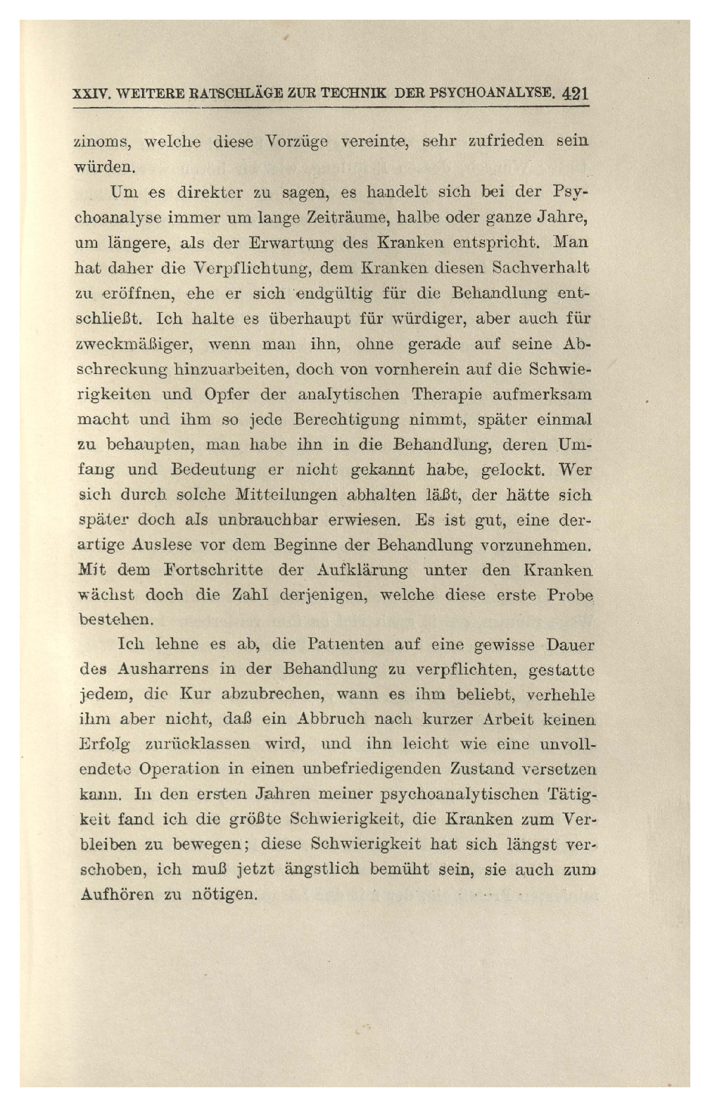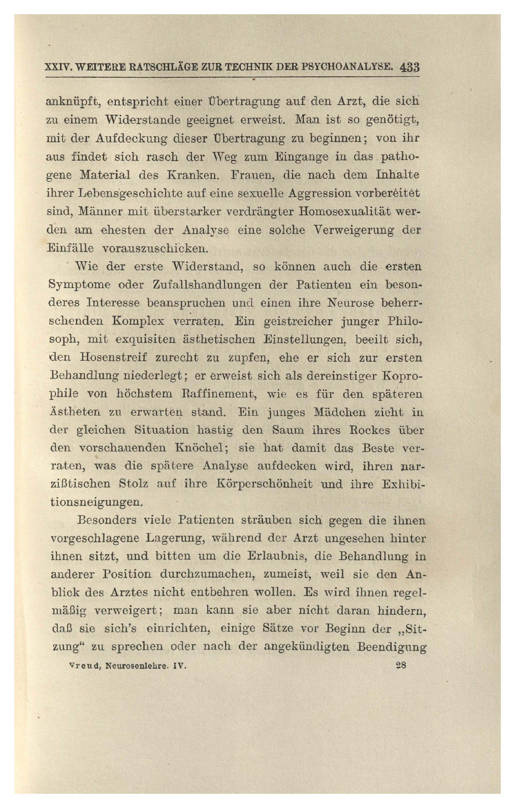 XXIV.WEITERE RATSCHLAGE ZUR TECHNIK DER PSYCHOANALYSE. 413