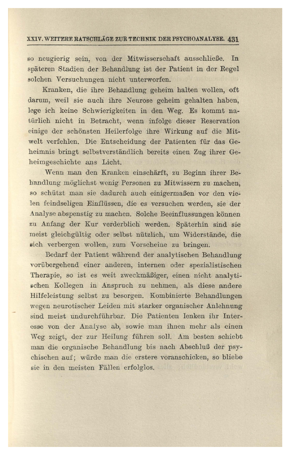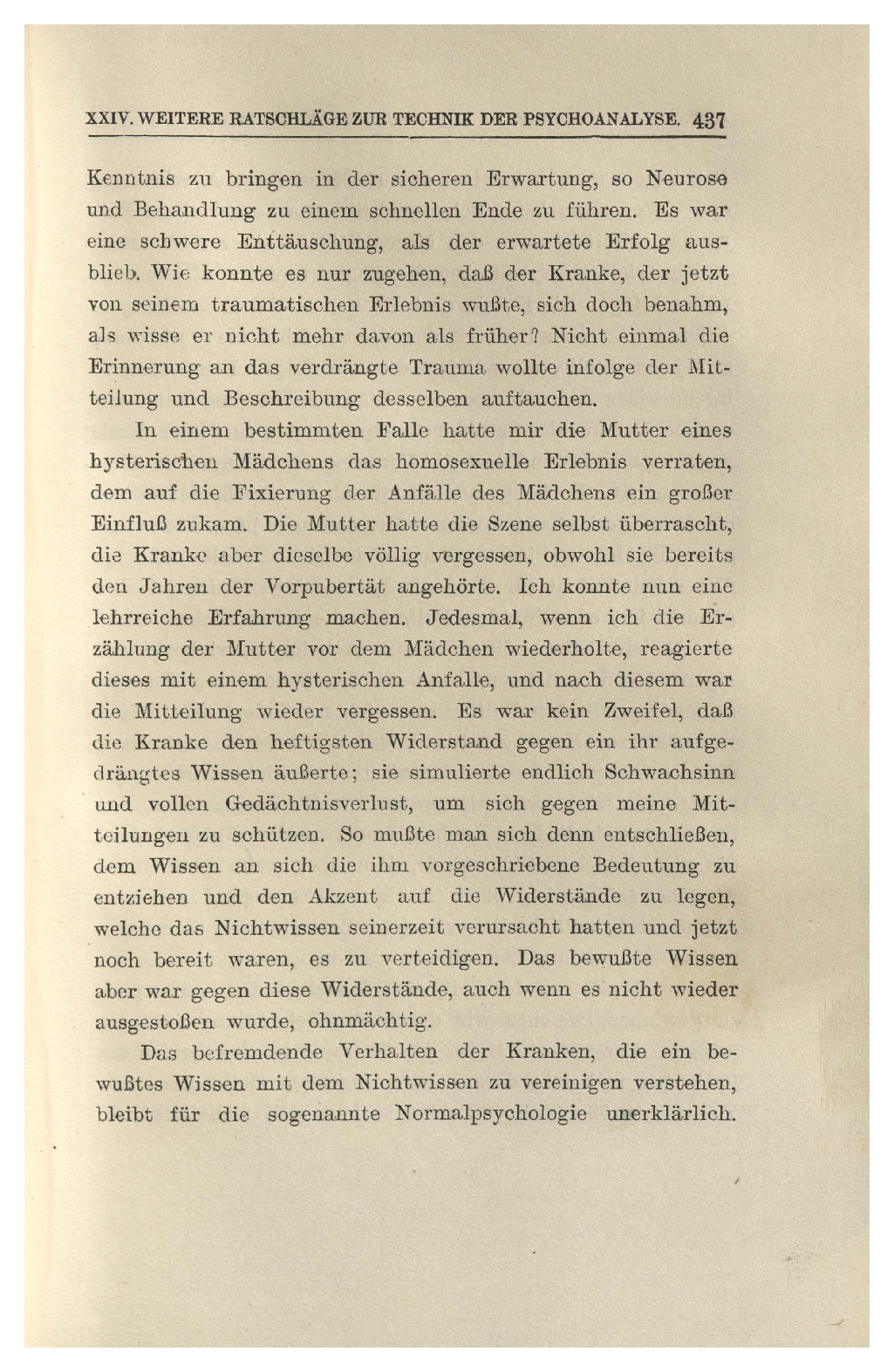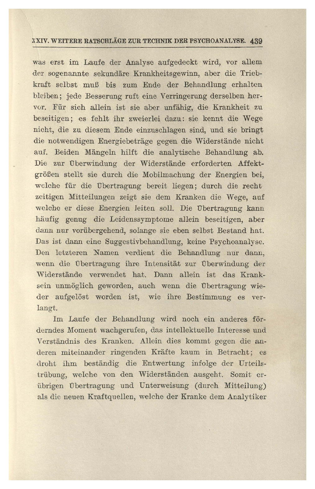 XXIV. WEITERE RATSCHLAGE ZUR TECHNIK DER PSYCHOANALYSE. 439