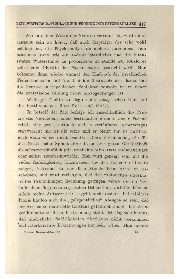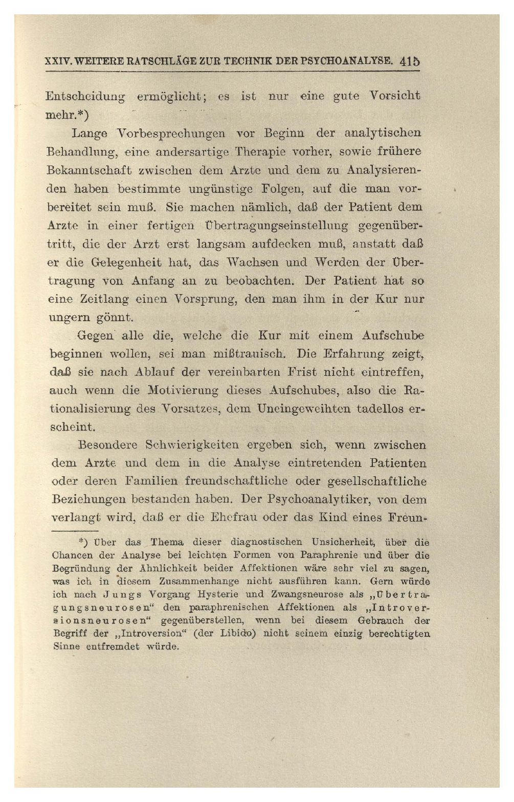 XXIV. WEITERE RATSCHLÄGE ZUR TECHNIK DER PSYCHOANALYSE, 415