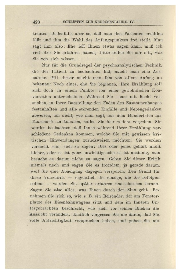der Beginn der Psychoanalyse und soll den Regeln derselben