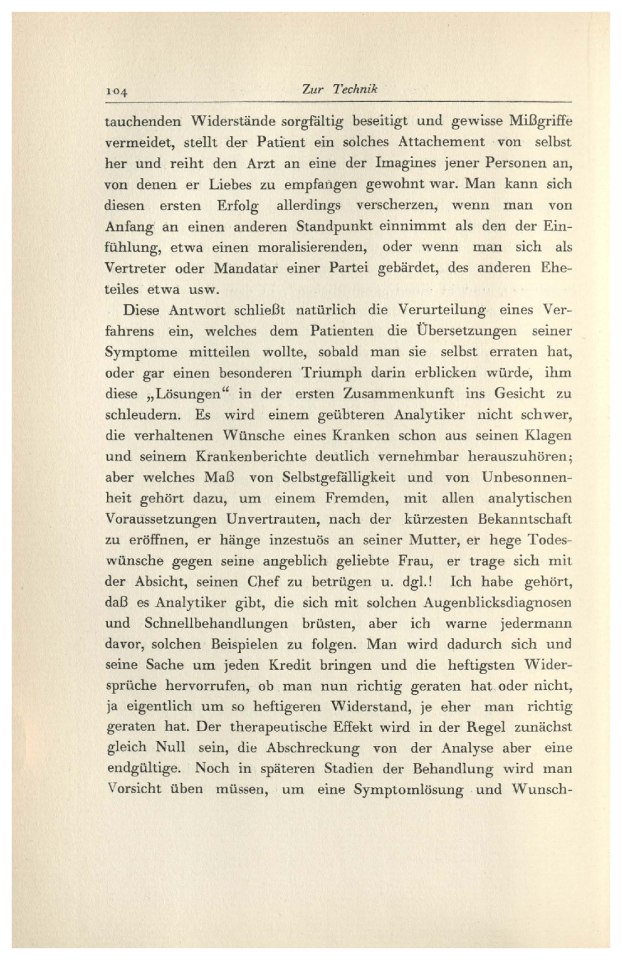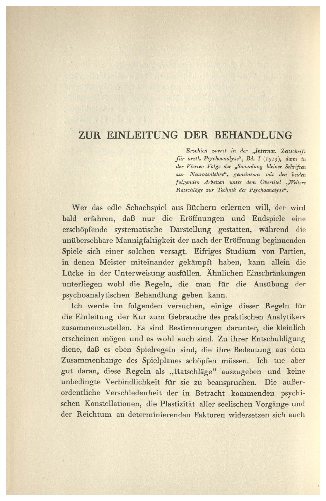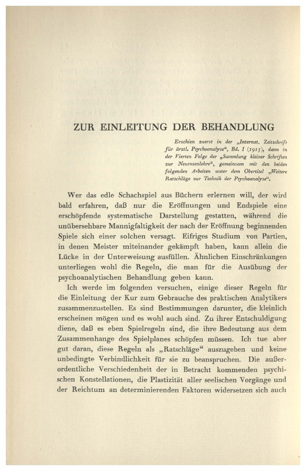 Ratschläge zur Technik der Psychoanalyse“,Wer das edle Schachspiel aus Biichern erlernen will, der wird
