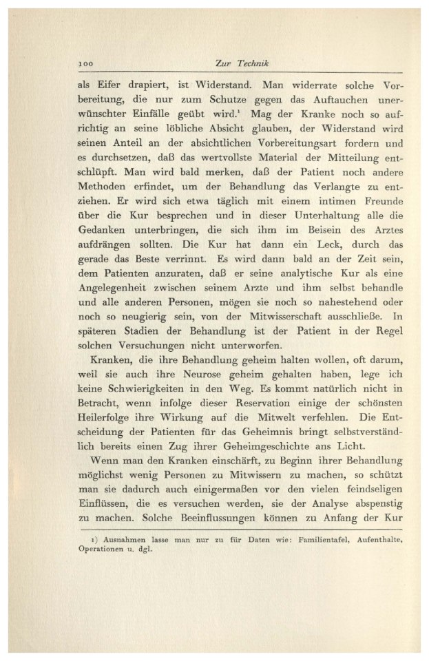 es ist nur eine gute Vorsicht mehr!Lange Vorbesprechungen vor Beginn der analytischen Behandlung,