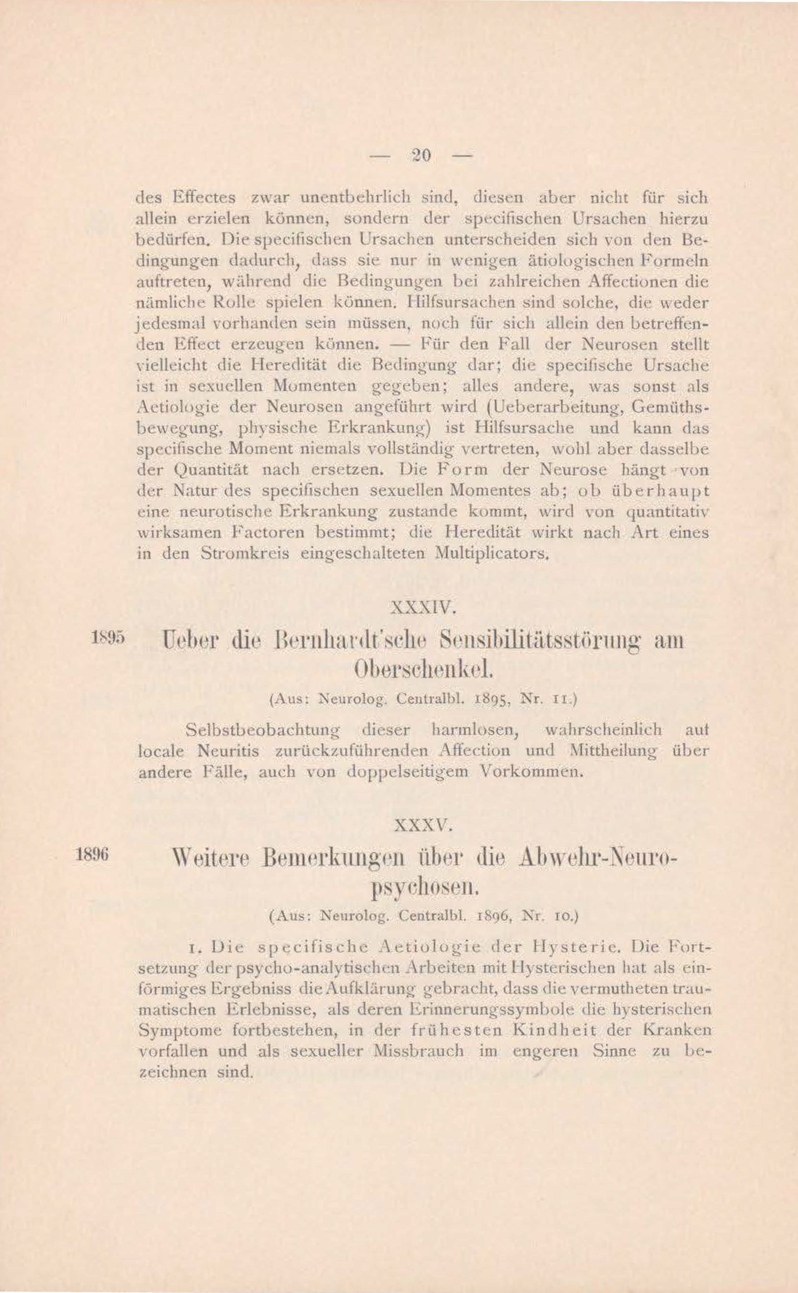 Actiologie der Neurosen angetührt wird (Ueberarbeitung, Gemüths