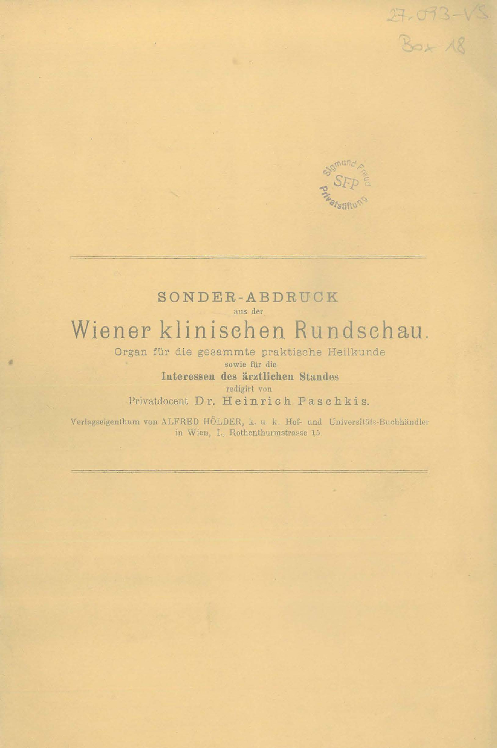 Dr. Sigm. Freud.In Nummer 2 des Neurologischen Centralblattes von