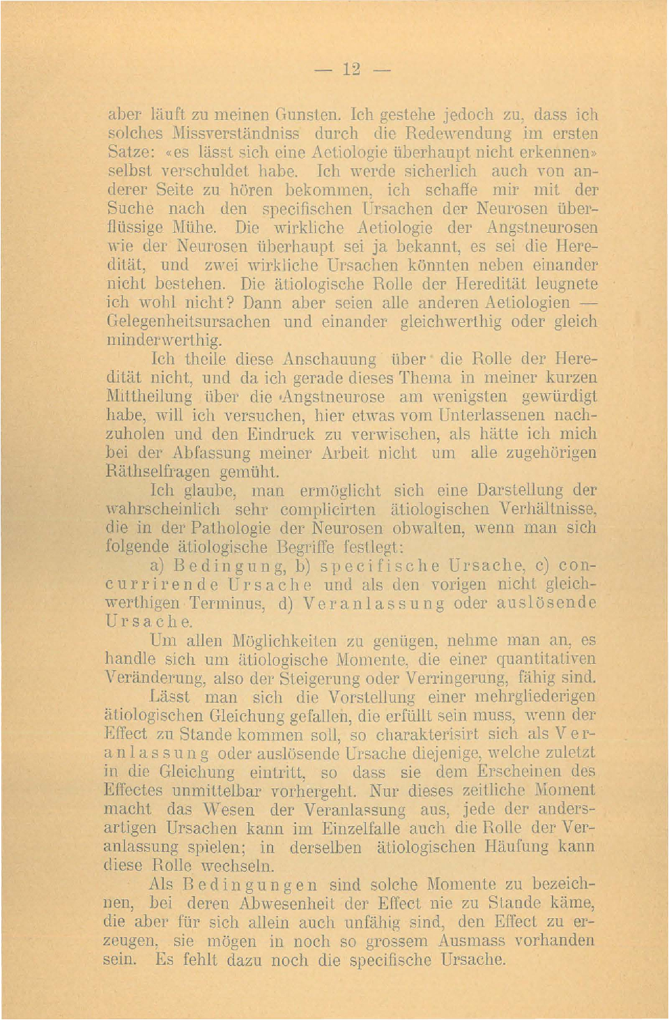 des Complexes «Angstneurose» besondere ätiologische Bedin-