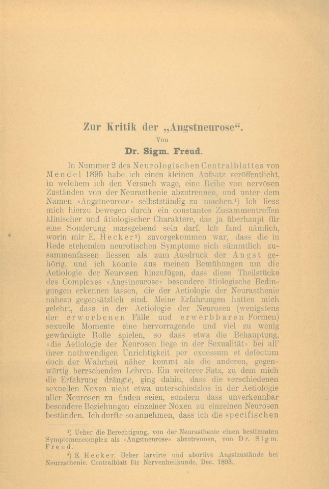 Aetiologie der Angstneurose ausmachen, in eine kurze Formel