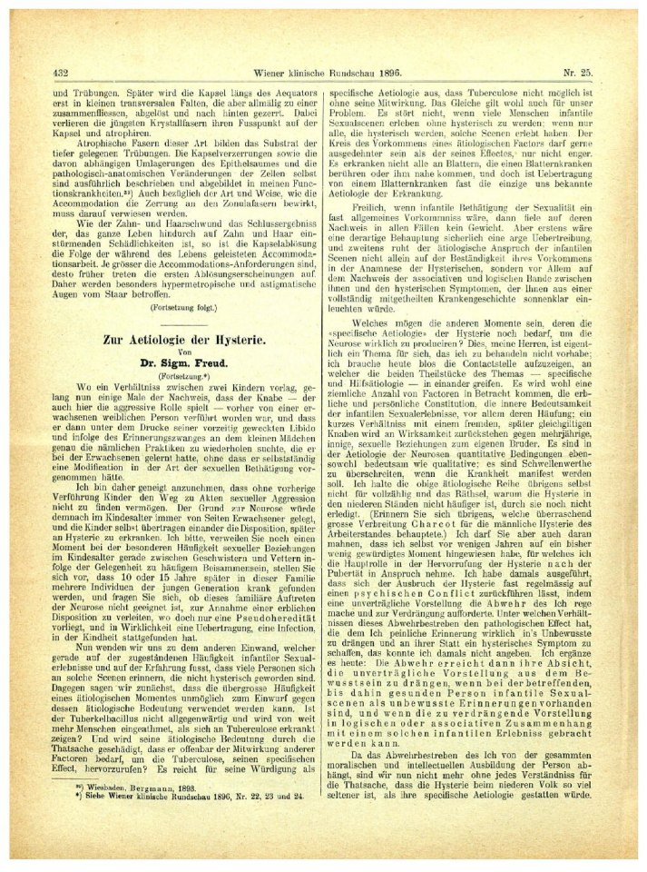 Freud, Sigmund | 1896-003/1925 | 1896c | 10397 | Zur Ätiologie der Hysterie | GS 1 | 404–438 | Fertig ✔ | Fertig ✔ | Ganz fertig / zutreffend ✔ | Fehlt ✖ | Fehlt ✖ | Ganz fertig / zutreffend ✔ | ✔ | EB | ✔ | ||