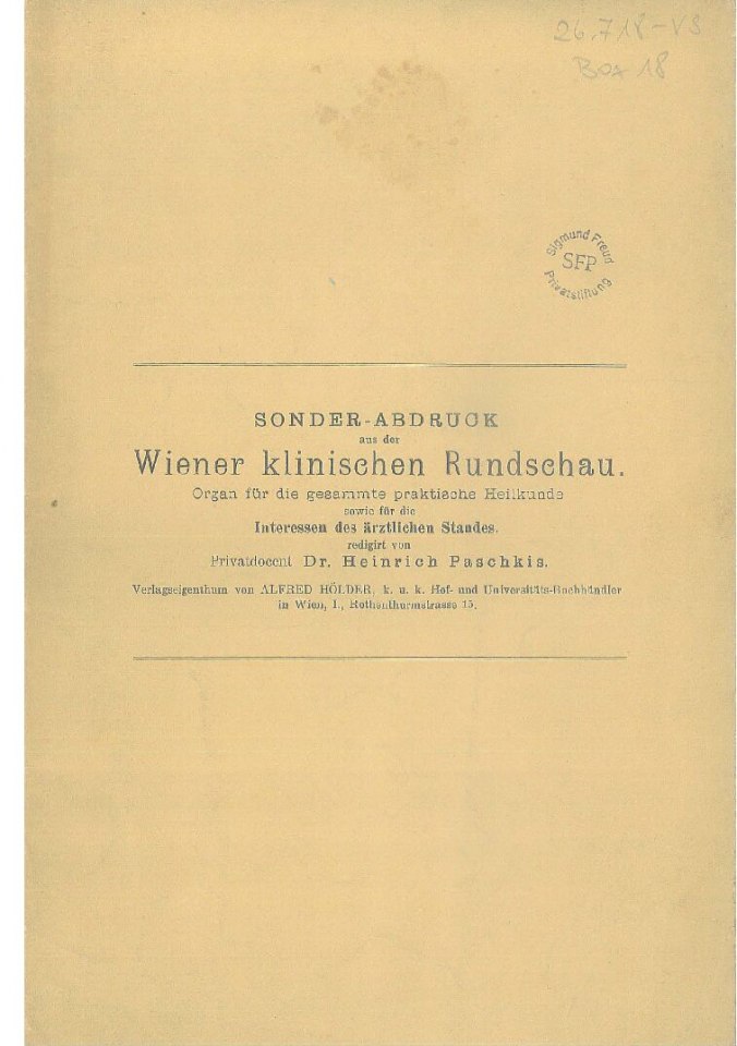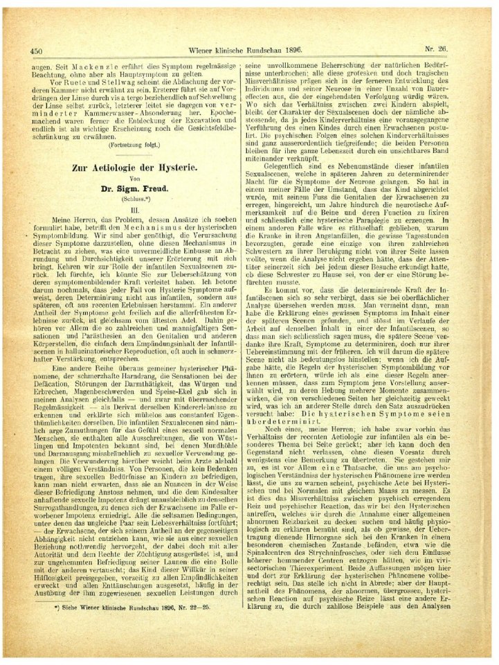 Freud, Sigmund | 1896-003/1896.6 | Zur Aetiologie der Hysterie | Separatum Wiener Klinische Rundschau, 10, 1896, 22 | 1–27 | Fertig ✔ | Fertig ✔ | Ganz fertig / zutreffend ✔ | Fehlt ✖ | Fehlt ✖ | Ganz fertig / zutreffend ✔ | ✔ | EB | ✔ | ||||