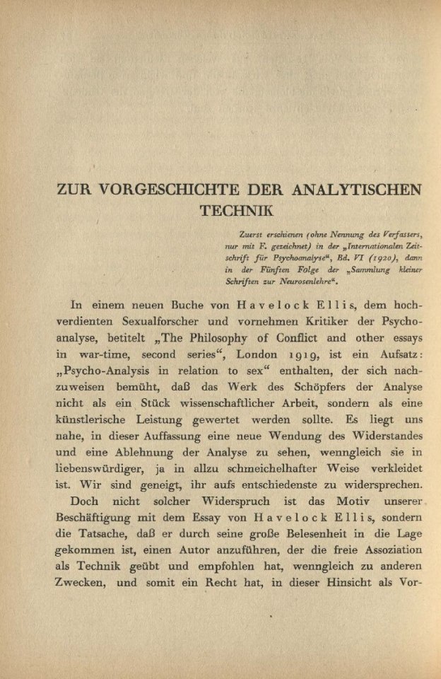Freud, Sigmund (1920b): Zur Vorgeschichte der analytischen Technik. GW XII, 309-312.